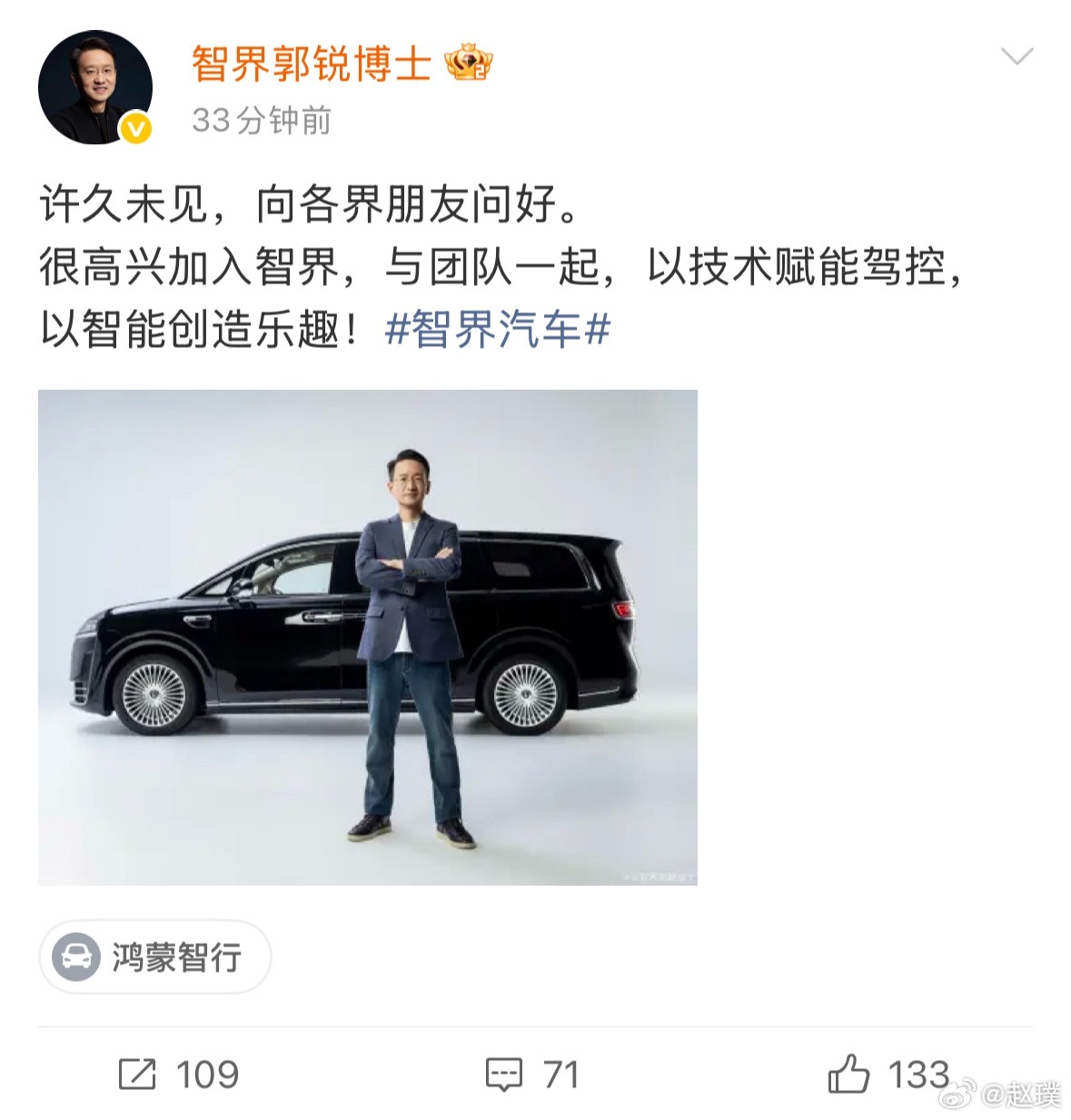 智界正式官宣郭锐博士出任董事长兼CEO。