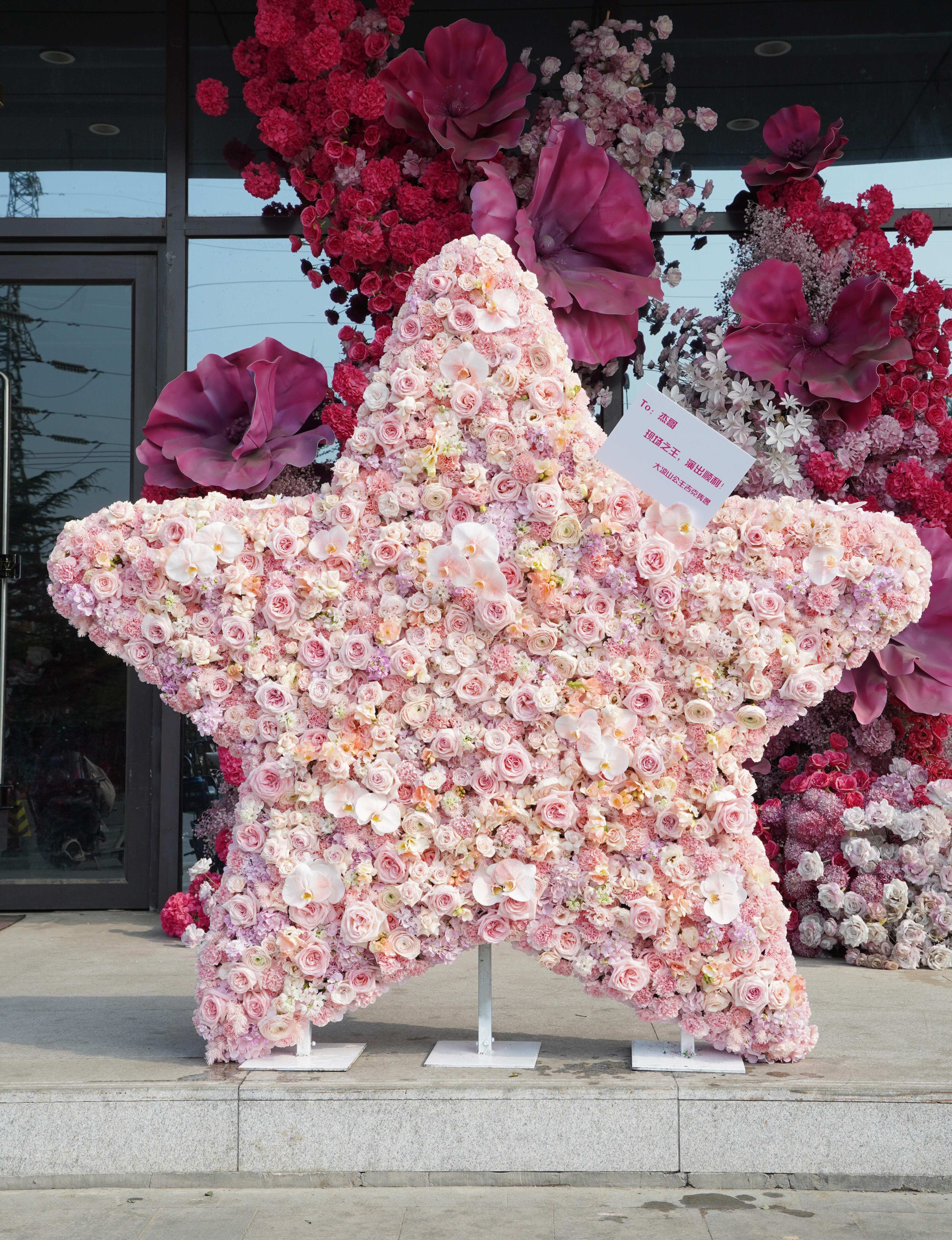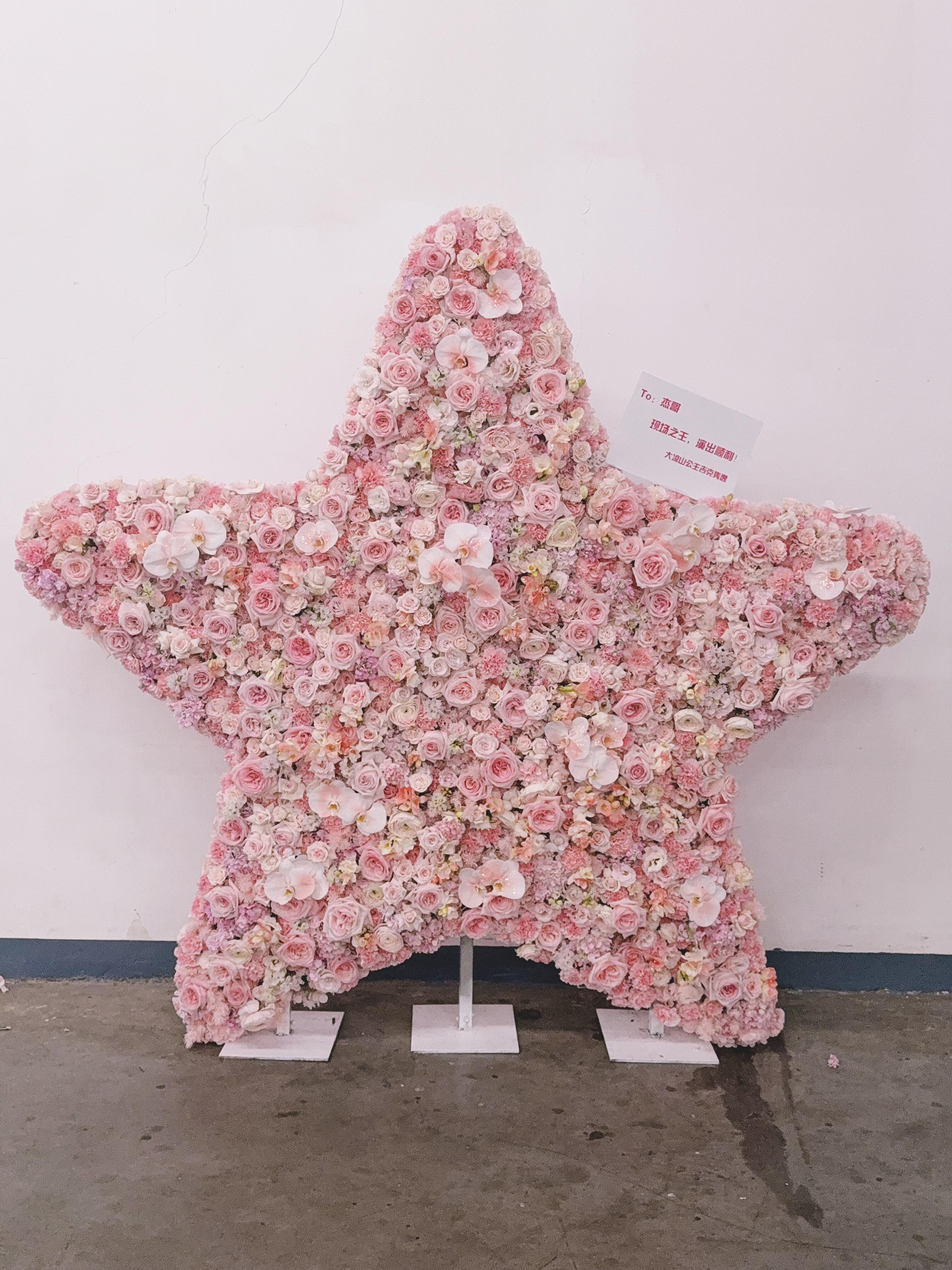 吉克隽逸送张杰2米星星 吉克隽逸送张杰鸟巢演唱会的花蓝太用心了,是2米的星星花,