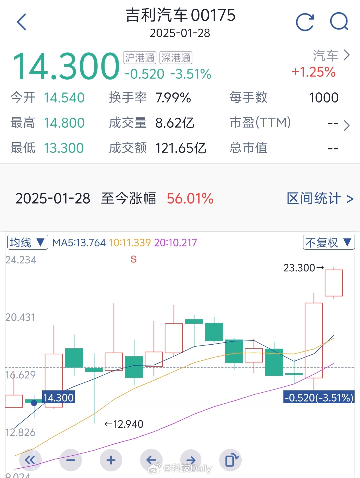 吉利大涨吉利股票也太猛了,吉利汽车近一个月大涨近50%,股价创四年新高!一季度销