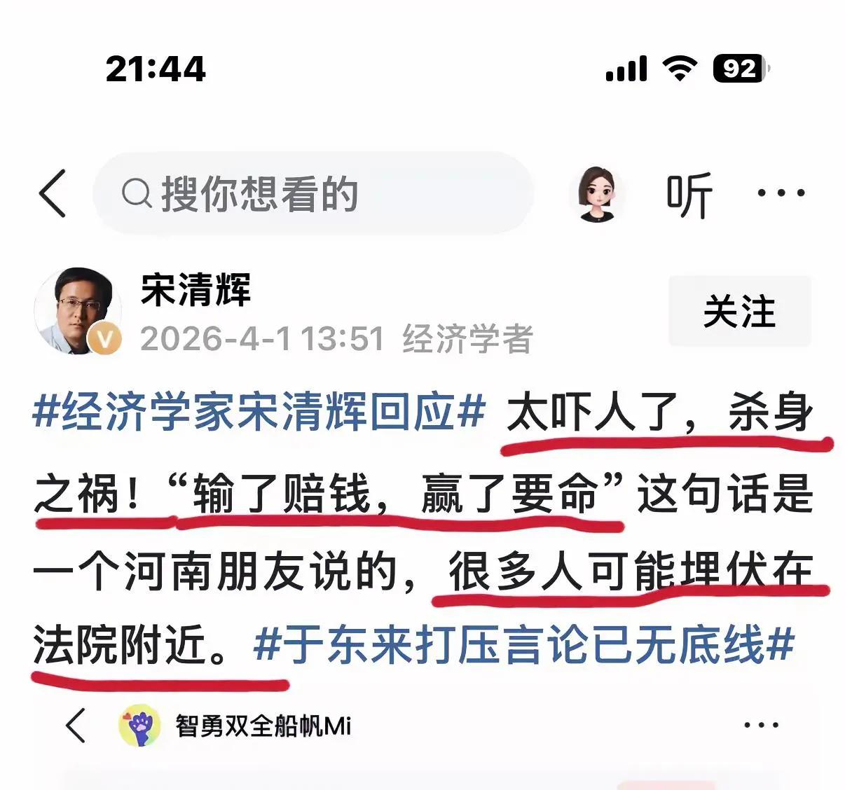 不管结果怎么样,官司缠身也是走霉运,单纯说“胖东来没有核心竞争力”本身不违法,真正触法的是宋清辉后续超出正常评论、侮辱谩骂、捏造误导性信息的言论。 法院判决(2026年3月一审) 许昌魏都区法院认定: 相关言论无事实依据、主观恶意明显,超出合理评论 构成 名誉权侵权 + 商业诋毁 判决:赔偿56万元+全网置顶道歉 据说今天二审开庭,什么结果下午就出来了