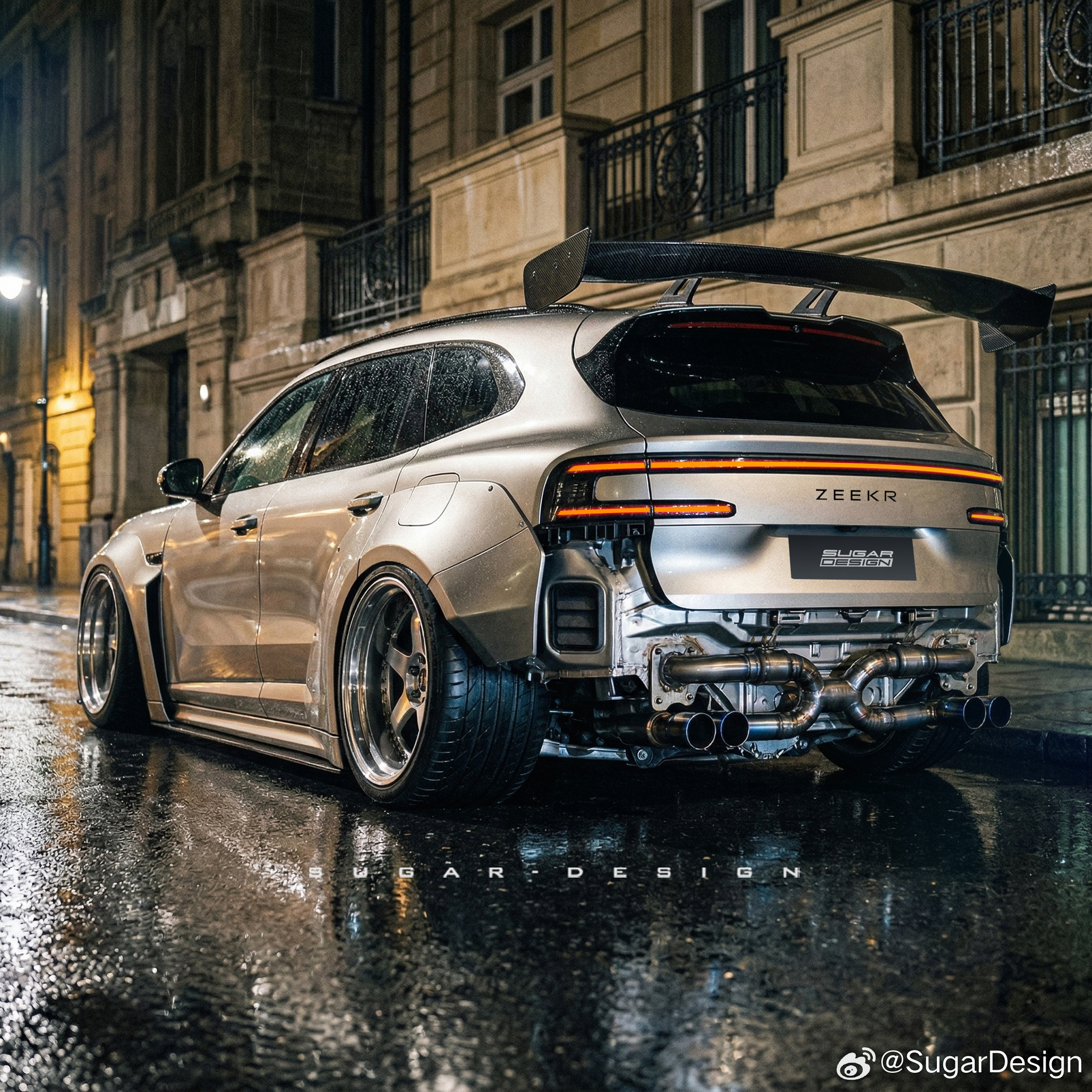 极氪8X怎么改?那当然是祖传宽体一套!网友们想要的排气管外露必须安排,四个拳头大的排气管