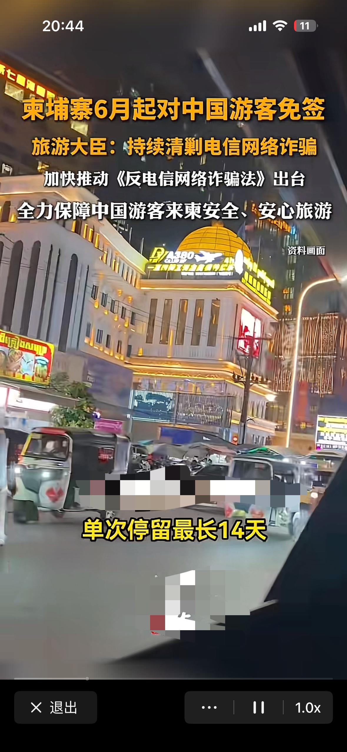 又有好消息,柬埔寨将对我们实行免签政策,单次停留长达14天。 柬埔寨经济发达,充满活力,是东南亚的旅游首选之地。 柬埔寨的相关部门与民众非常欢迎我们这边的游客,已经做好了一切接待,准备让你在柬埔寨吃得好,住得好玩得好。 关于有国民在柬埔寨被绑架,那是极个别现象,绝对不代表主流。 欢迎来到柬埔寨来一次惊险刺激之游!