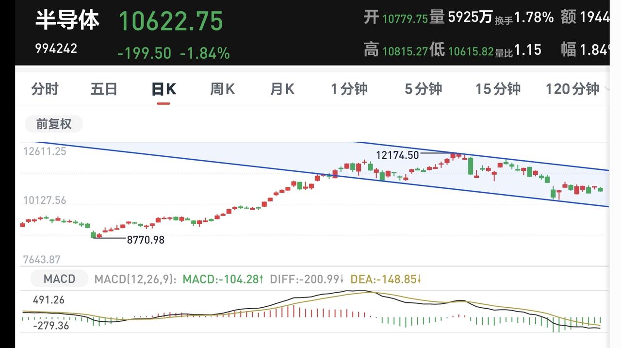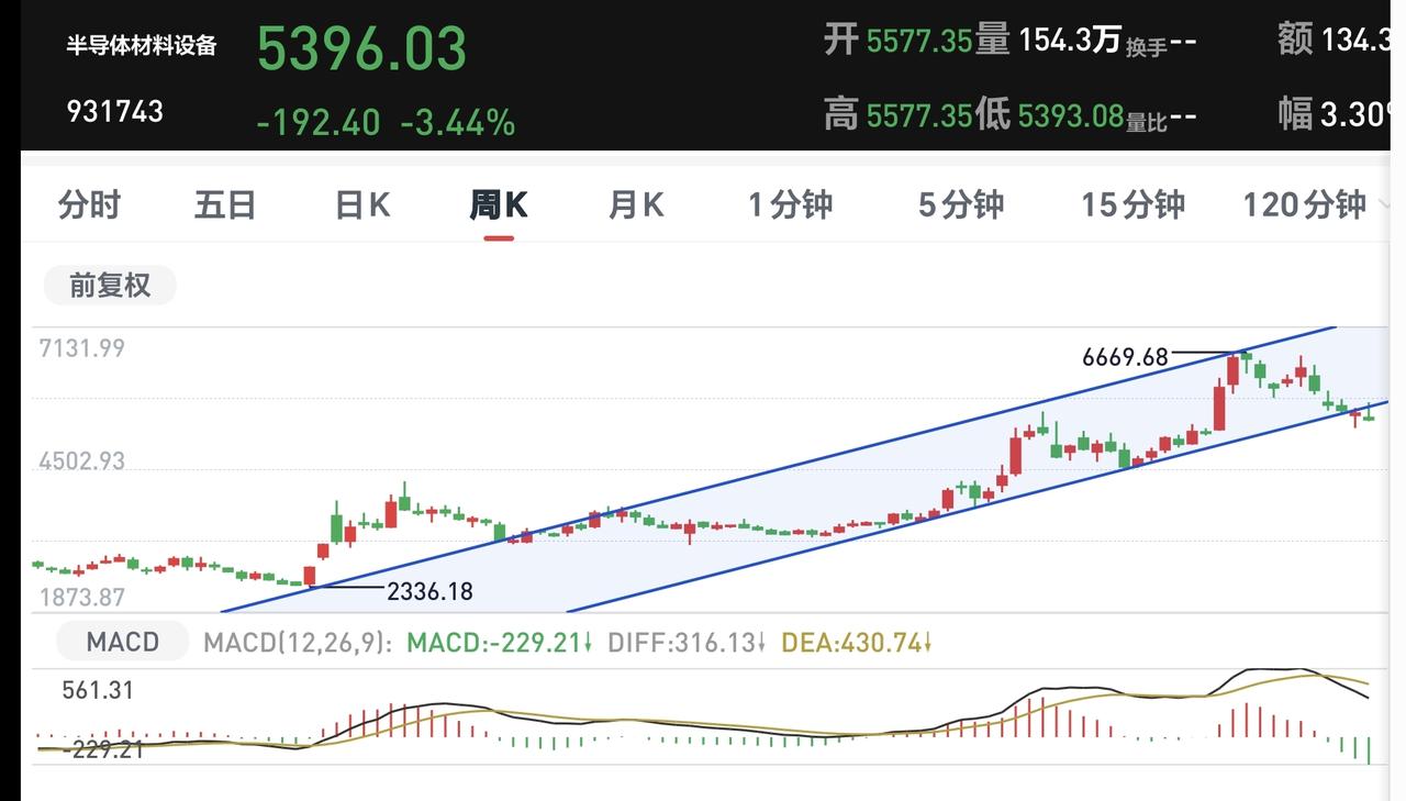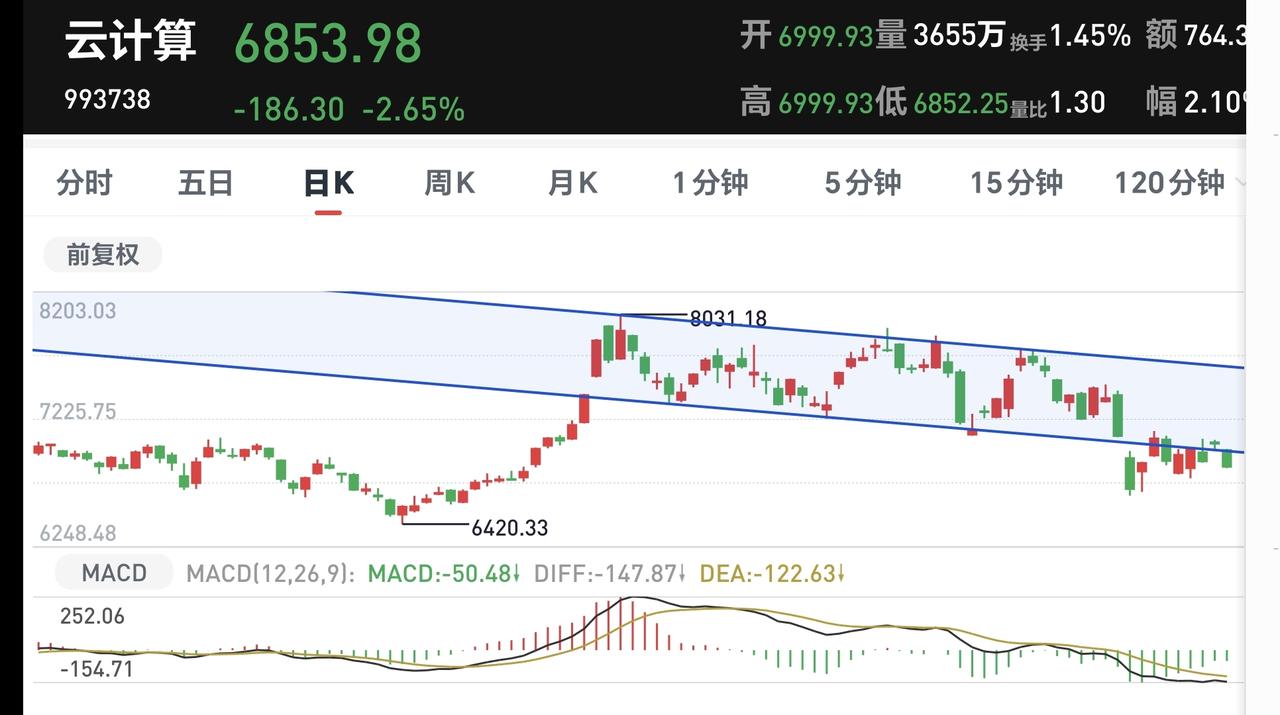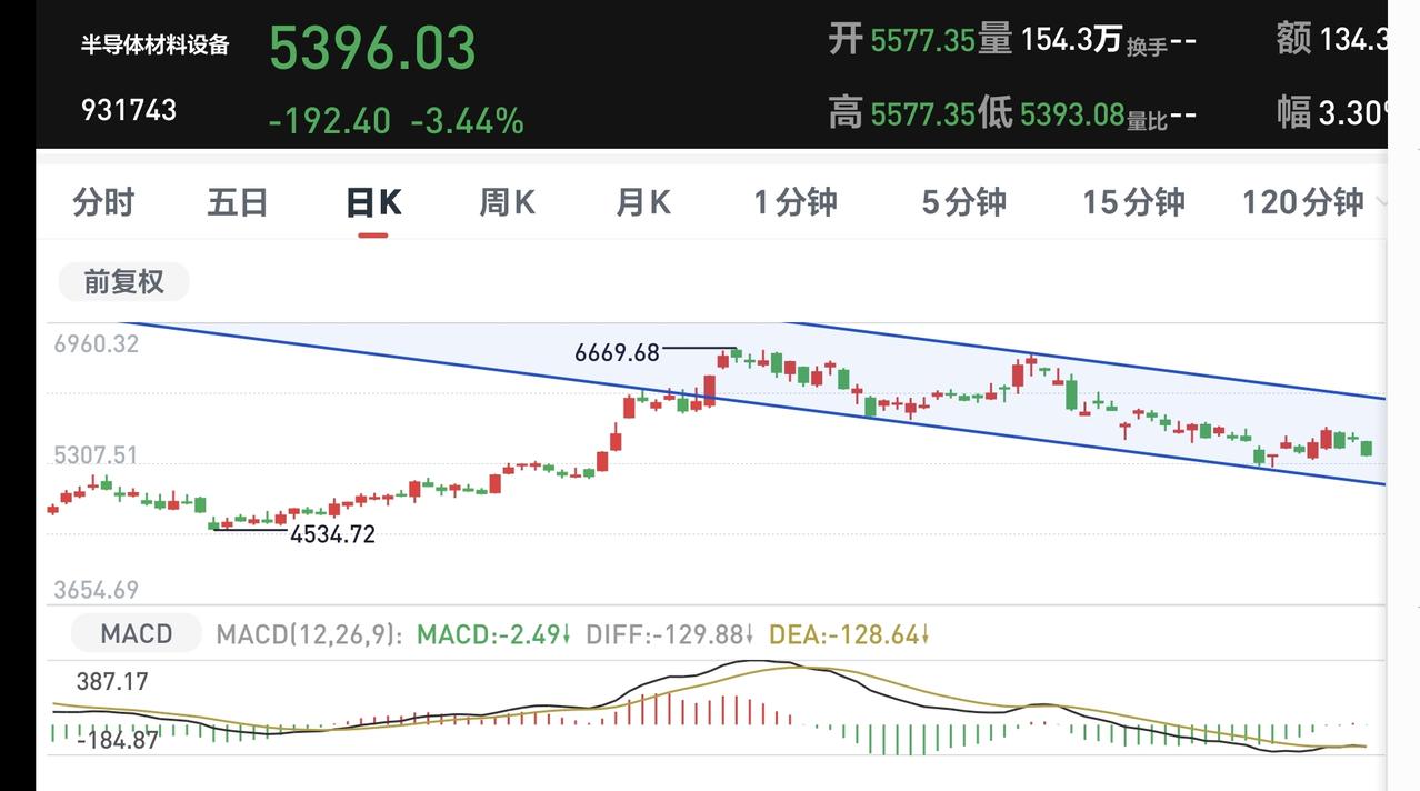 基金:半导体板块,半导体材料设备板块,云计算板块 今天下跌幅度最大的三个板块是:半导体材料设备板块,云计算板块,半导体板块。 半导体材料设备板块下跌幅度最大,盘中估值下跌了3.47%,持有人数在所有板块当中排名第14位。 半导体材料设备板块日线级别处于下跌通道中,最近一段时间都是在这个下跌通道中震荡,在这个板块日线级别下跌趋势被改变之前,都不要轻易判断这个板块的下跌趋势会被改变。 半导体材料设备板块上周下跌跌破了周线级别上涨通道的下轨线,这个板块的周线级别上涨趋势已经被改变,本周是在这个上涨通道的下方震荡,在重新回到这个周线级别上涨通道内之前,都不要轻易判断这个板块的调整已经结束。 半导体板块今天下跌幅度排名第二,盘中估值下跌了2.77%,持有人数在所有板块当中排名第九位。 半导体板块日线级别处于短期下跌通道中,最近一段时间也是在这个下跌通道中震荡,在上涨突破这个下跌通道上轨线之前,都不要轻易判断这个板块的调整已经结束。 半导体板块周线级别处于上涨通道中,今天下跌以后来到了这个上涨通道下轨线上,近期观察会不会有效破位这个上涨通道的下轨线,如果实现了有效破位,长线持有的人也需要注意风险。 云计算板块今天的下跌幅度排名第三,盘中估值下跌了2.73%,持有人数在所有板块当中排名第50位。 云计算板块日线级别处于下跌通道中,今天的下跌跌破了这个下跌通道的下轨线,进入了加速下跌走势,短线持有的人需要注意风险。 云计算板块周线级别上周下跌跌破了上涨通道的下轨线,本周是在这个上涨通道的下方震荡,这个板块周线级别的上涨趋势已经被破坏,长线持有的人需要注意风险。 今天中午收盘的时候,主力资金净流出498亿,指数在上下震荡的过程当中,主力资金无视指数的涨跌,都是在出逃当中,下午继续观察反弹的过程中有没有资金进场。 再看一下下面的截图9,再强调一下观点:虽然今天上午是下跌的,但还没有确定现在就是在走五浪下跌,确定五浪下跌的标准是近期不创3955点新高,哪怕是盘中上涨突破3955点也不行。 持有基金现在盘中估值亏损了3900元,盈利金额最大的三个板块是:创新药板块,大消费板块,白酒板块,亏损金额最大的三个板块是:证券板块,芯片半导体板块,创业板指,持有基金的涨跌幅度见下面的截图13。 许多人只能接受上涨,接受不了下跌,许多人只能接受利好消息,接受不了利空消息,这些人的思维方式都是有问题的,我们无所谓市场的利好和利空消息,也无所谓市场的上涨和下跌,我们只要把自己的应对策略做好就可以,需要知道上涨了应该怎么办,也需要知道下跌了应该怎么办,因为,这才是我们能够做到的,至于市场的上涨和下跌,市场的利好和利空消息,那些都是我们决定不了的事情,操心那些事情就是徒增烦恼。 到现在为止,我们还是做好两手准备,如果上涨趋势形成了,我们就会追涨进场。如果继续调整到达前低的附近,我们就会抄底进场,我们现在就是在等待市场的确定性,这个市场的确定性还没有到来之前,我们就只能是观望。 当市场有了确定性以后,我会第一时间分享给大家,大家帮忙评论点赞,转发和分享,谢谢大家的支持。