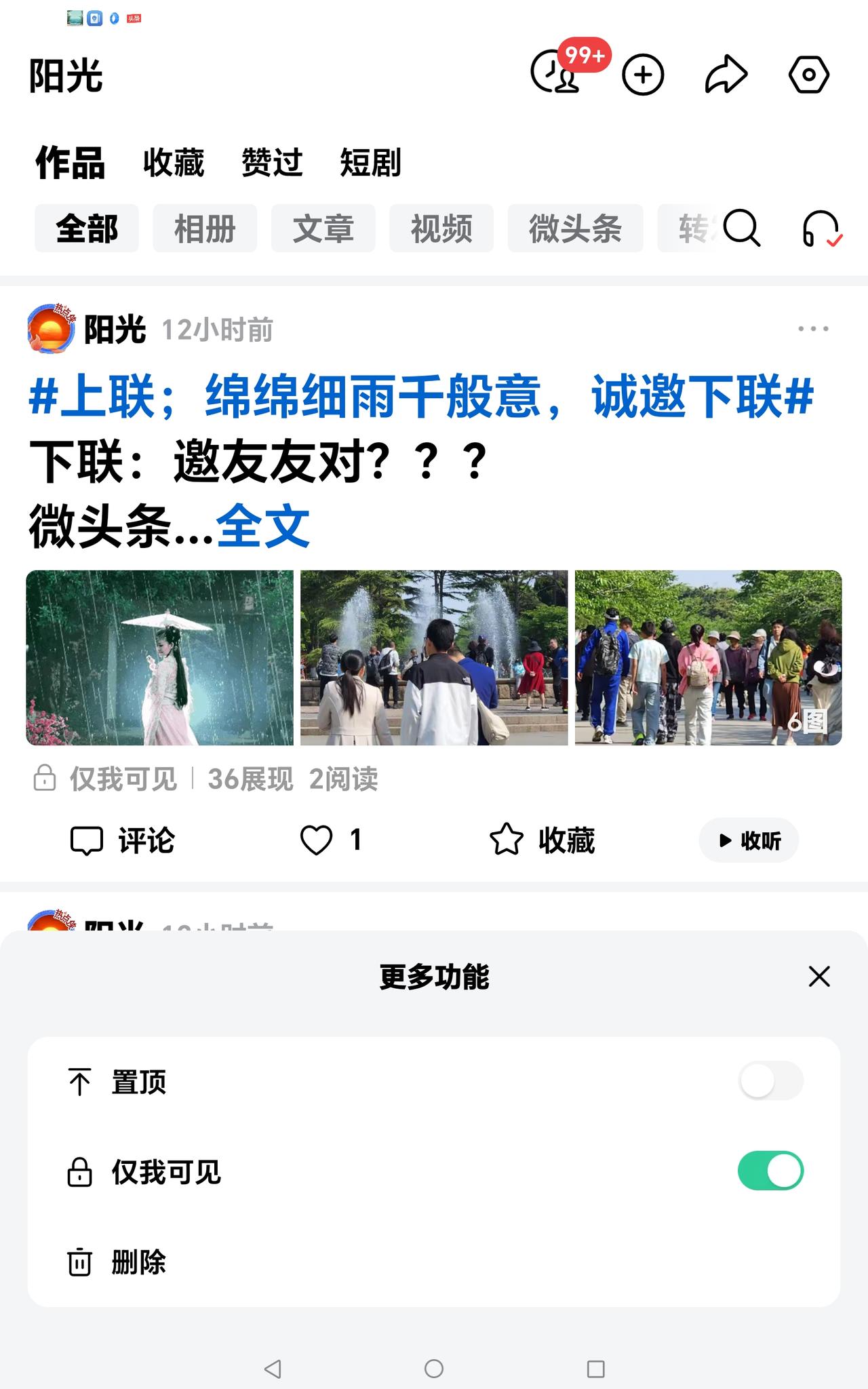 今年春天的心愿是到处走走,除游玩观光,再给友友点赞评论。 虽然头条没给多少流量,也不发文要流量了,横加歪主意,目的叫你多发文。为什么头条还要个人发文要流量,很难让人理解。 昨天説我发的要流量的《微头条》失败了,原因是没加定位图,你要我的定位图干什么?那是我个人的隐私,还不接受伊朗的教训吗? 发文失败了也不让删除,我为了不让友友们白在上面点无用的赞和评论,我就这作品设置了“仅我可见”。 如果我说的是假话,请友友们看看头条是怎么说的:是我有错还头条有错,评论一下吧!
