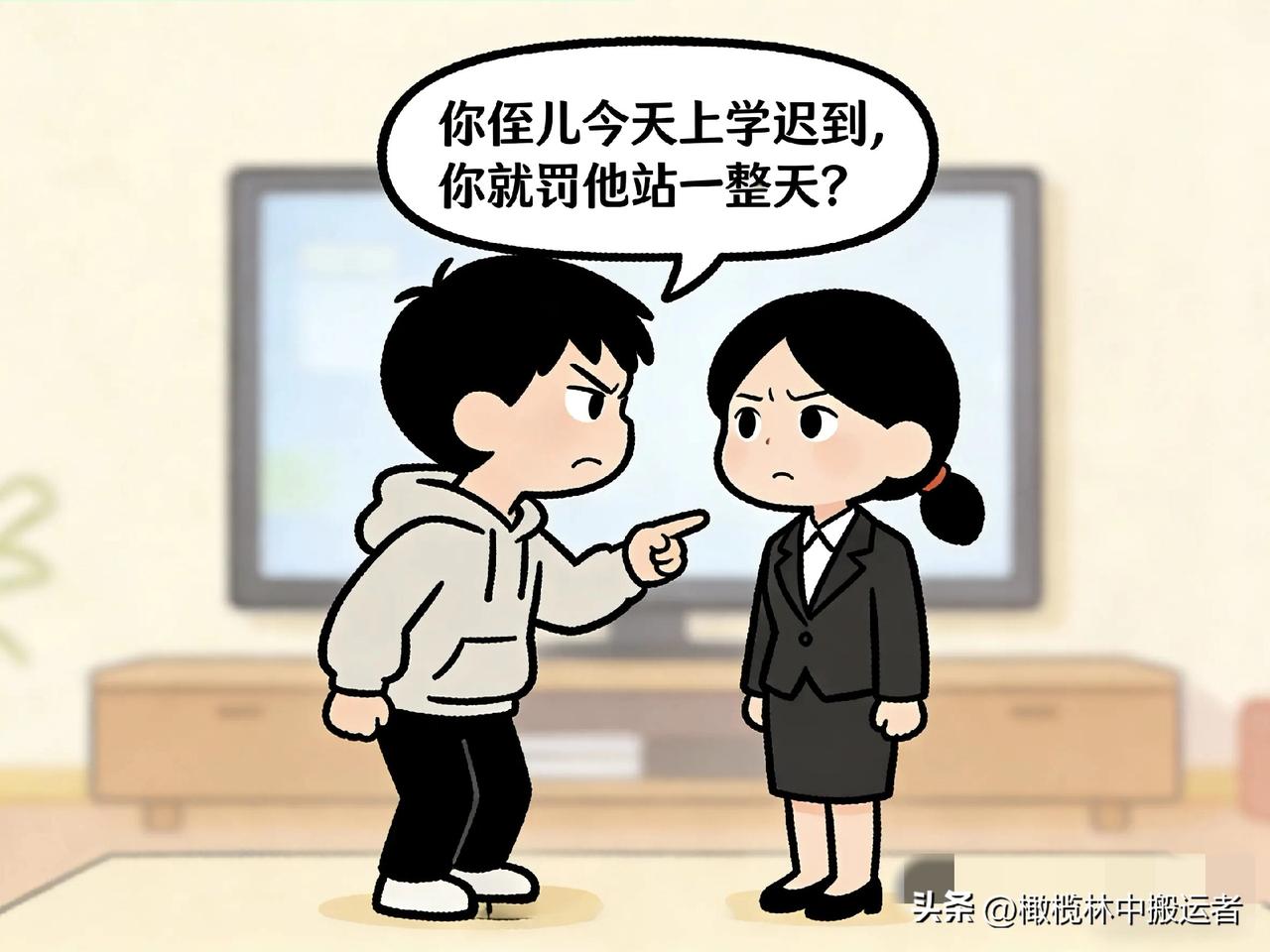 趣味漫画:你侄儿今天上学迟到,你就罚他站一整天?妹妹无辜说:我是班主任,得一视同