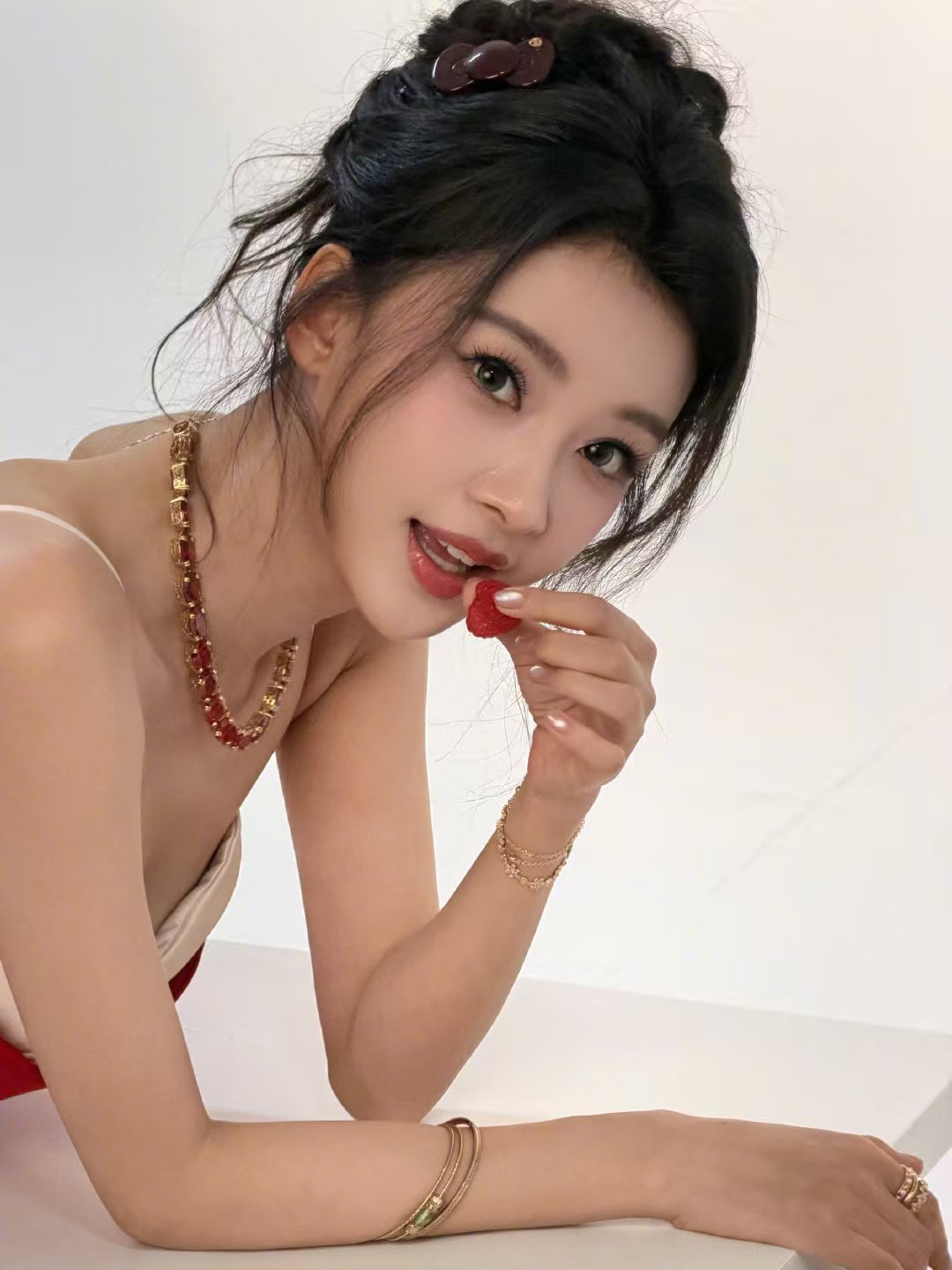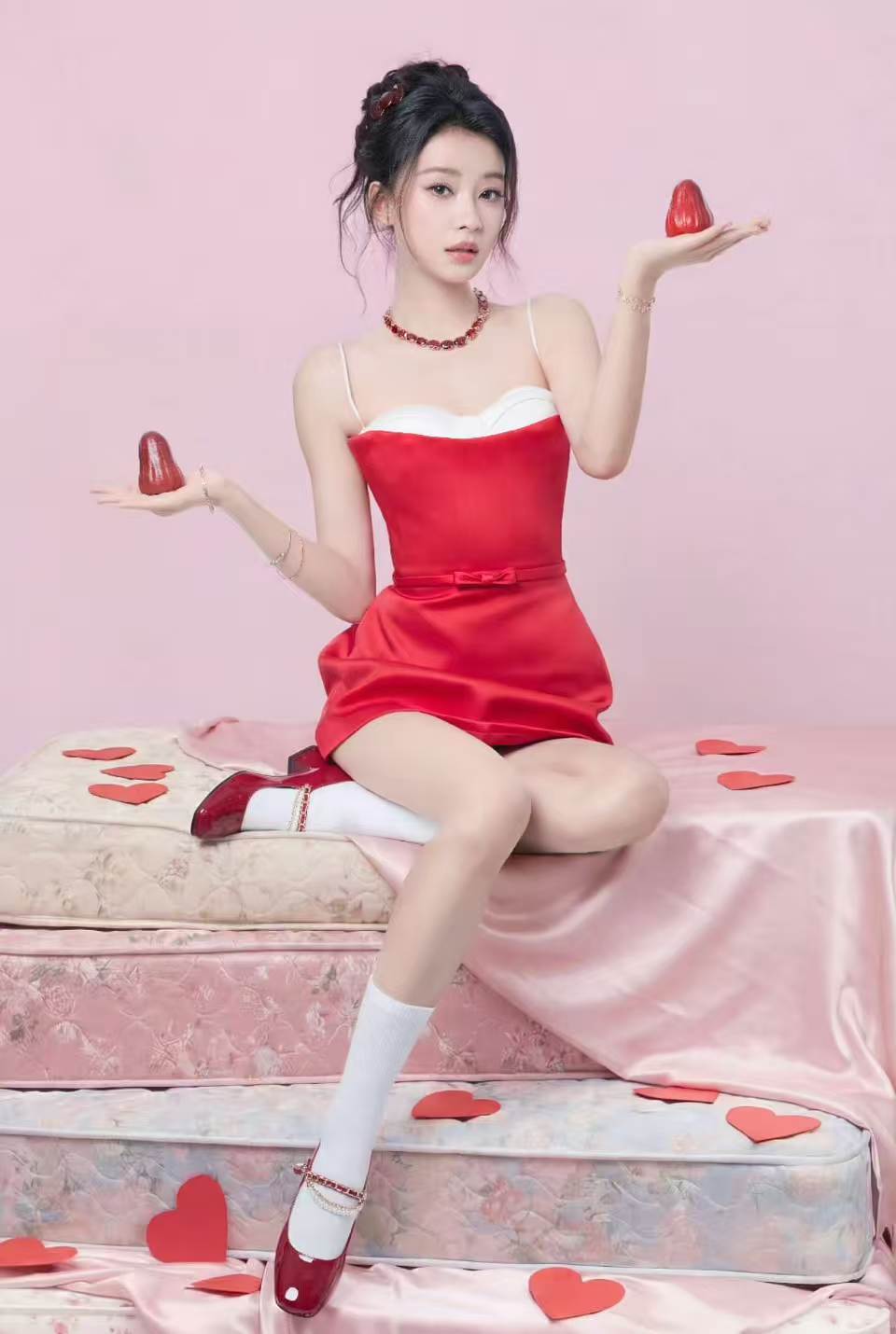 孙怡红白拼接抹胸裙孙怡树莓少女红裙造型哇孙怡这套造型满满少女感