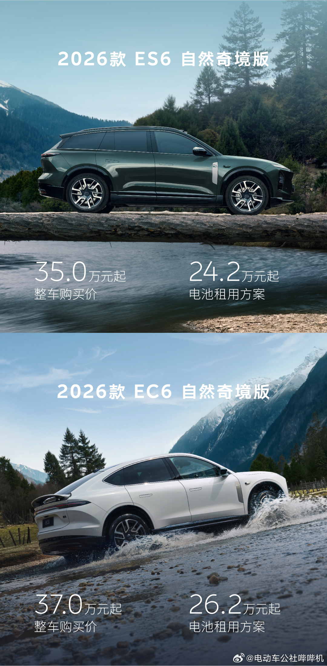 新款蔚来ES6售价33.8万起,租电池方案售价23万起;新款蔚来EC6售价35.8万起,租电池方案25万起。同时推出特别版的ES6和EC6,分别售价35/37万起,租电池方案24.2/26.2万起。蔚来