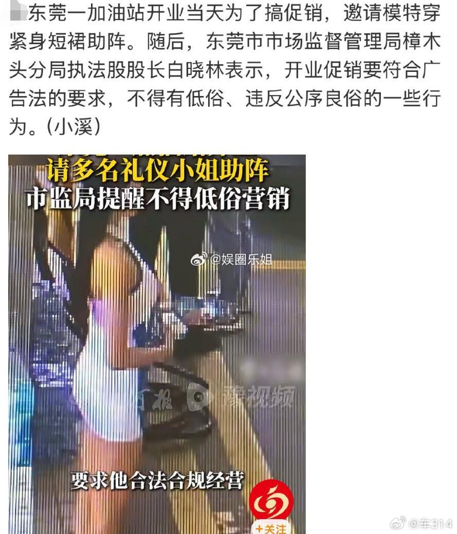 熟悉的画面,加油站开业请来几位小姐姐跳舞,只是穿了个紧身短裙,就被某些人说成“低俗擦边”了。紧身短裙,这种穿搭什么时候成了“违反公序良俗”的了?合着逛商场就可以穿,用来商业演出就不能穿,那好了,以后演艺圈里都别穿各种时装了,大家都穿大棉袄二棉裤,除了脸之外一点皮肤都别露出来,满意了吧?有些人啊,不知道怎么想的,本来是体现女性美好身姿的穿搭,到他们脑子里就成了不能见光的东西…..加油站开业请模特穿紧身短裙搞促销
