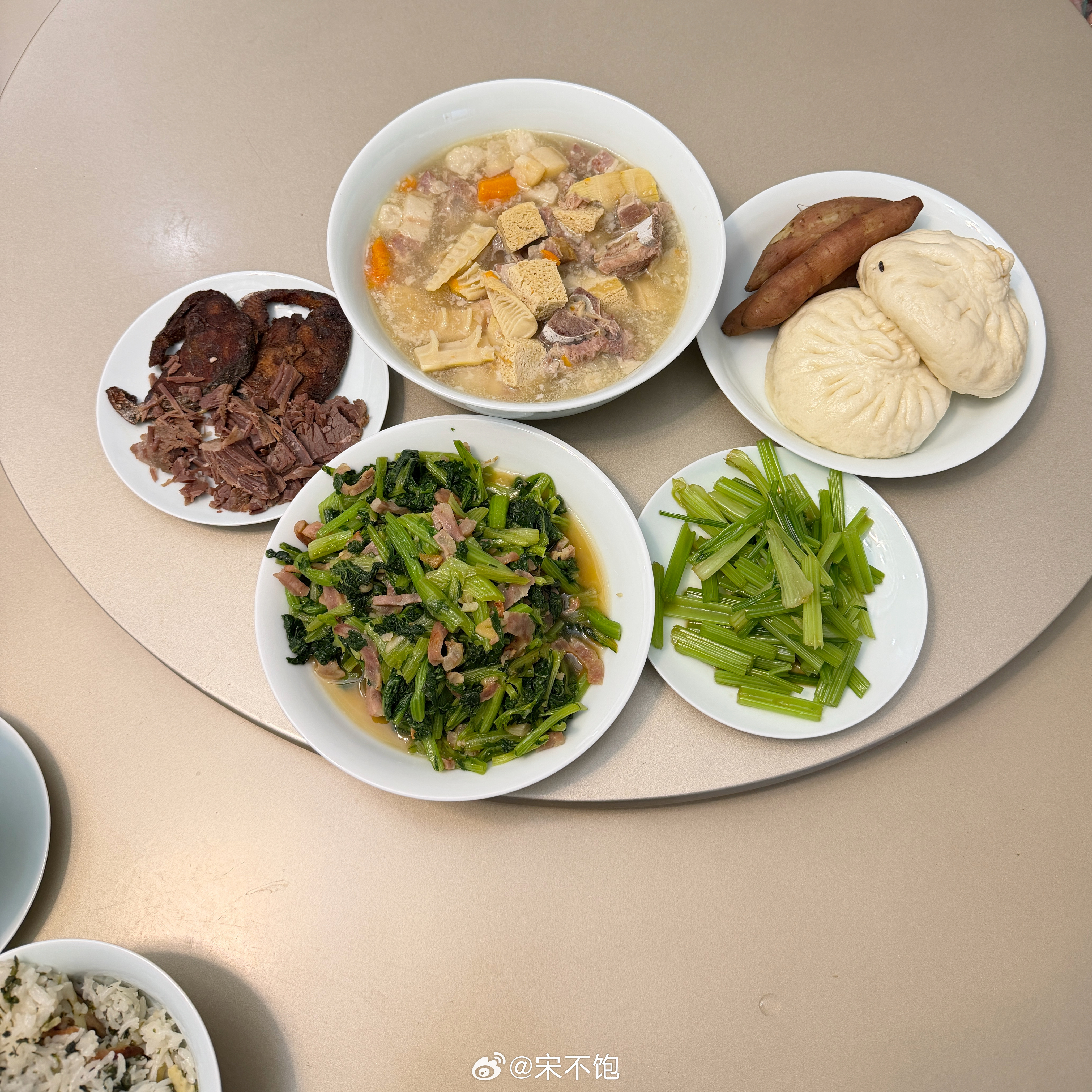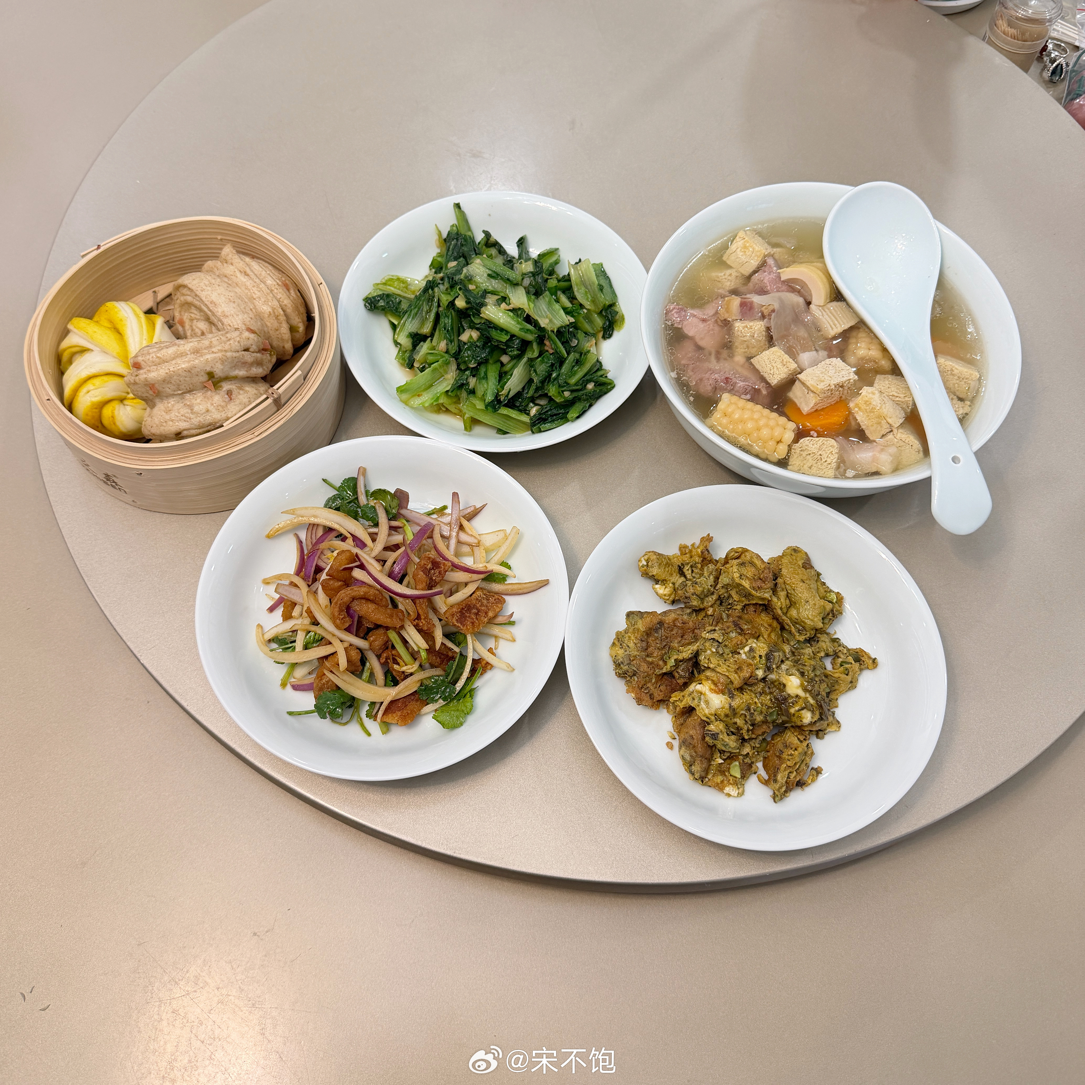 早上六点铁锅又响了。白粥、包子、水煮蛋、雪里蕻,三年没重样,也没点过一次外卖。我