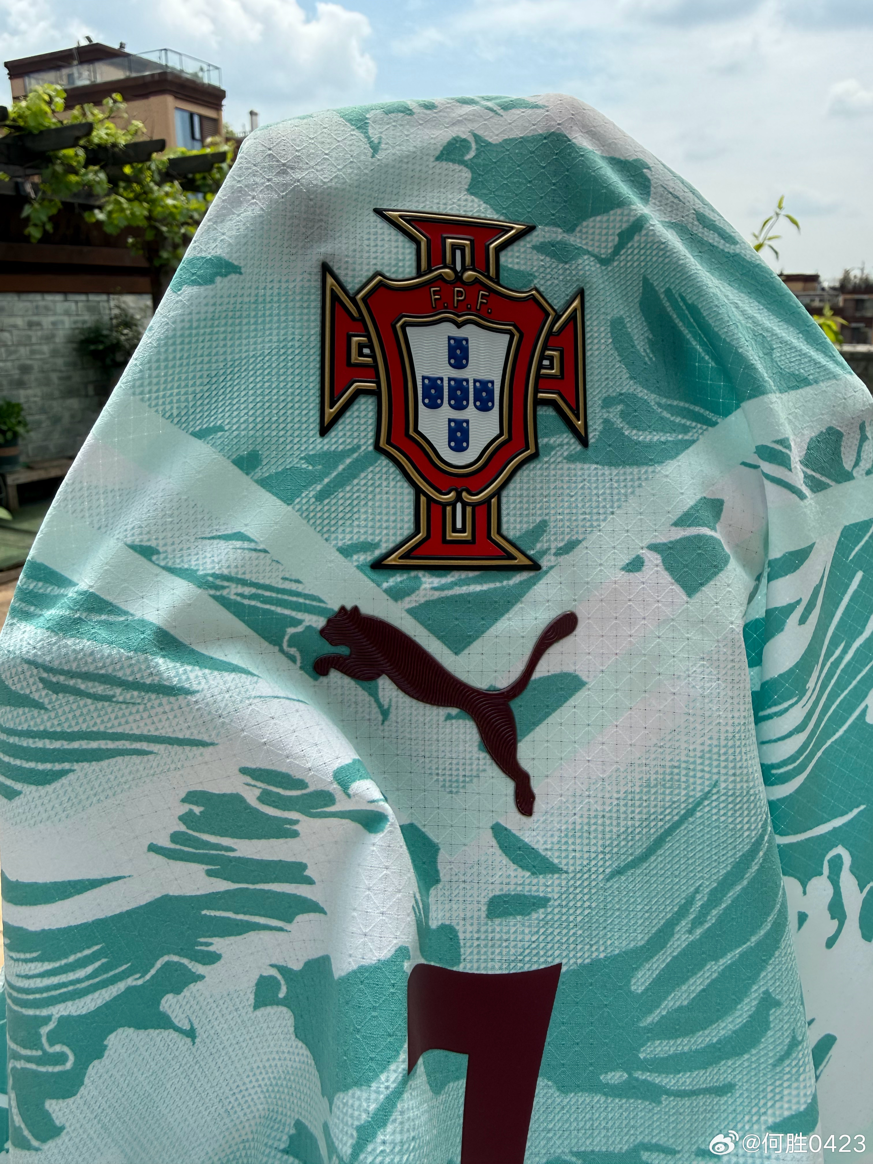 2026葡萄牙国家队客场球衣,设计灵感来源于葡萄牙的海洋文化,白色为基地,覆盖青绿色的波浪纹理,充满了动感和力量,球员版采用ULTRAW EAVE面料,柔顺轻薄,毫无负重感,简单来说就是穿了很没穿一样,强烈建议买球员版