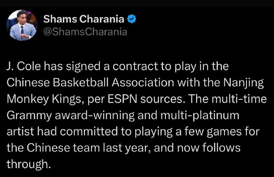 JCole真的来中国了!!!南京同曦主场离我只有20分钟车程!!!