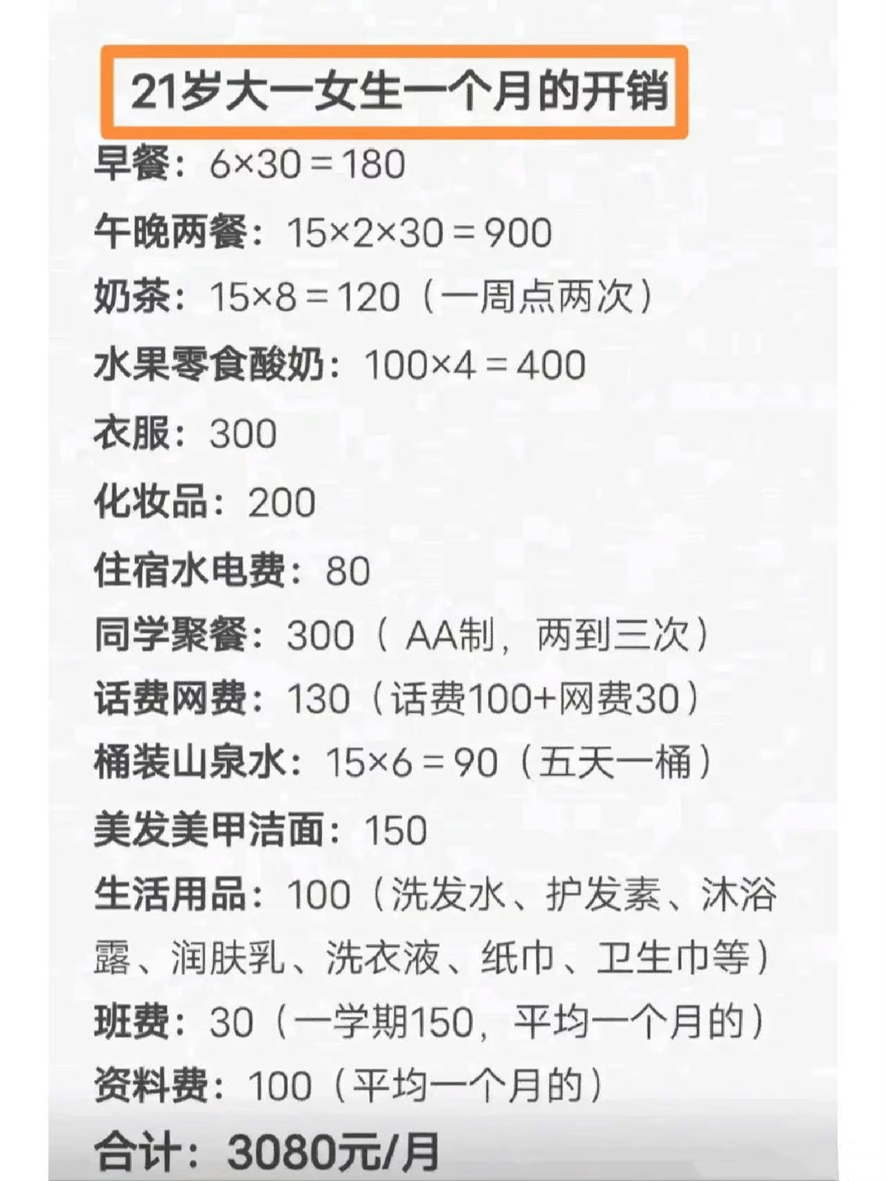 奇怪大一女生的开销没感觉哪项不正常 怪不得上大学老了这么多