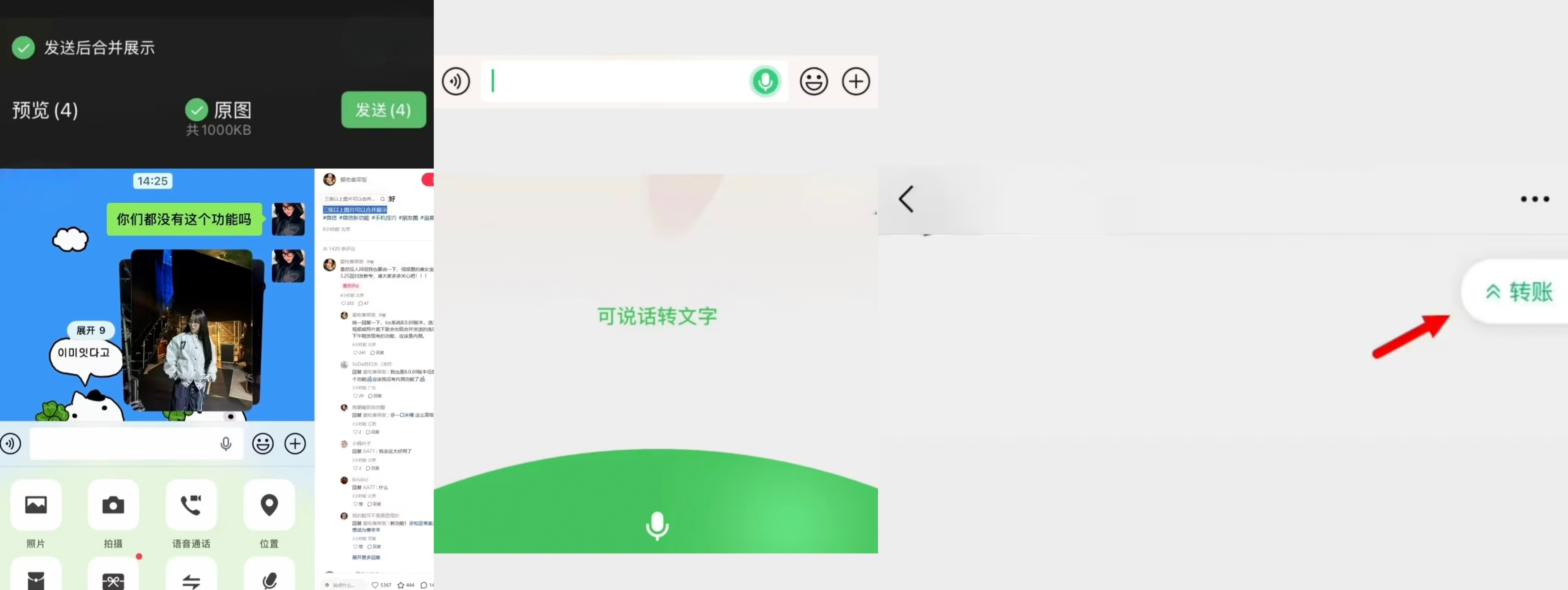 语音转文字新界面长按输入框右侧麦克风图标,进入“可说话转文字”界面,松开即发送、上滑取消,支持语音实时转文字。
