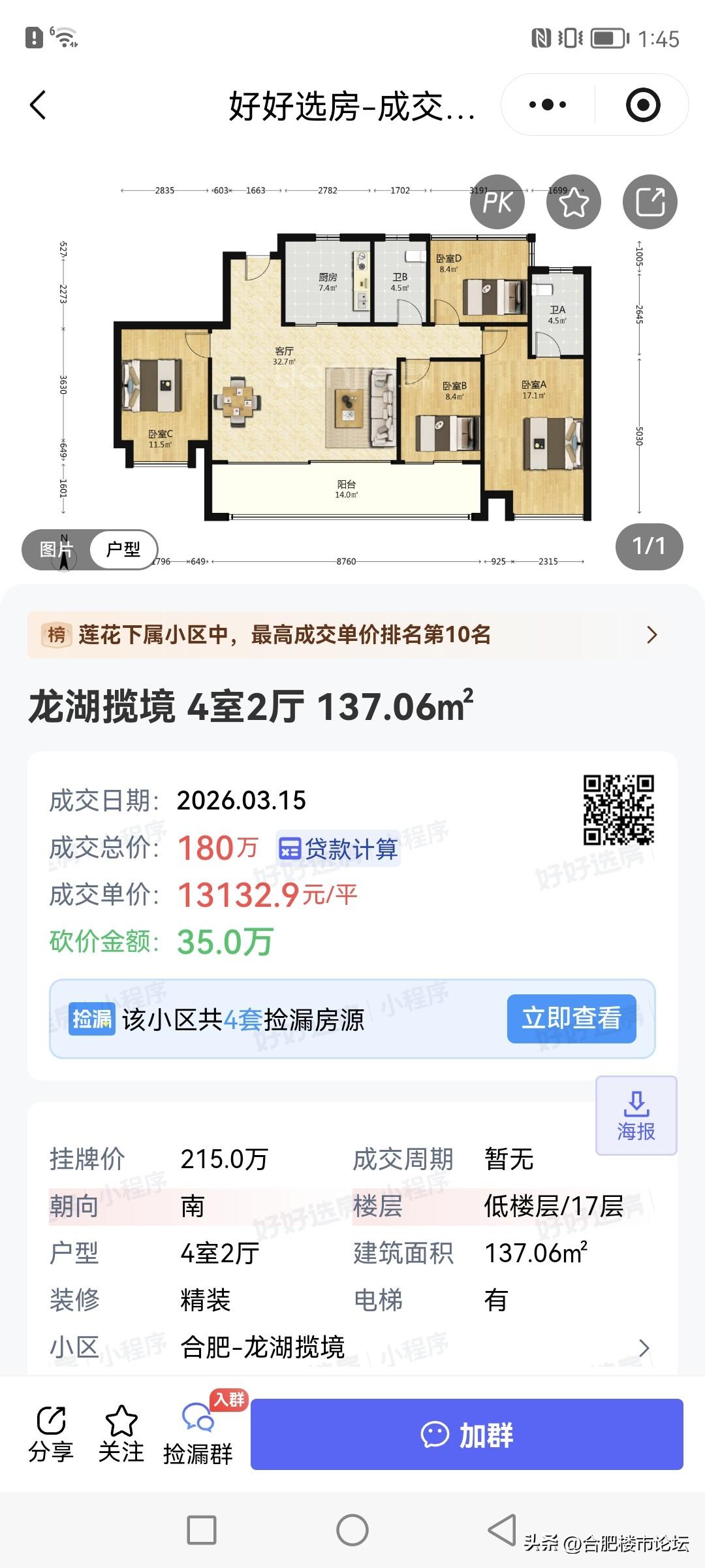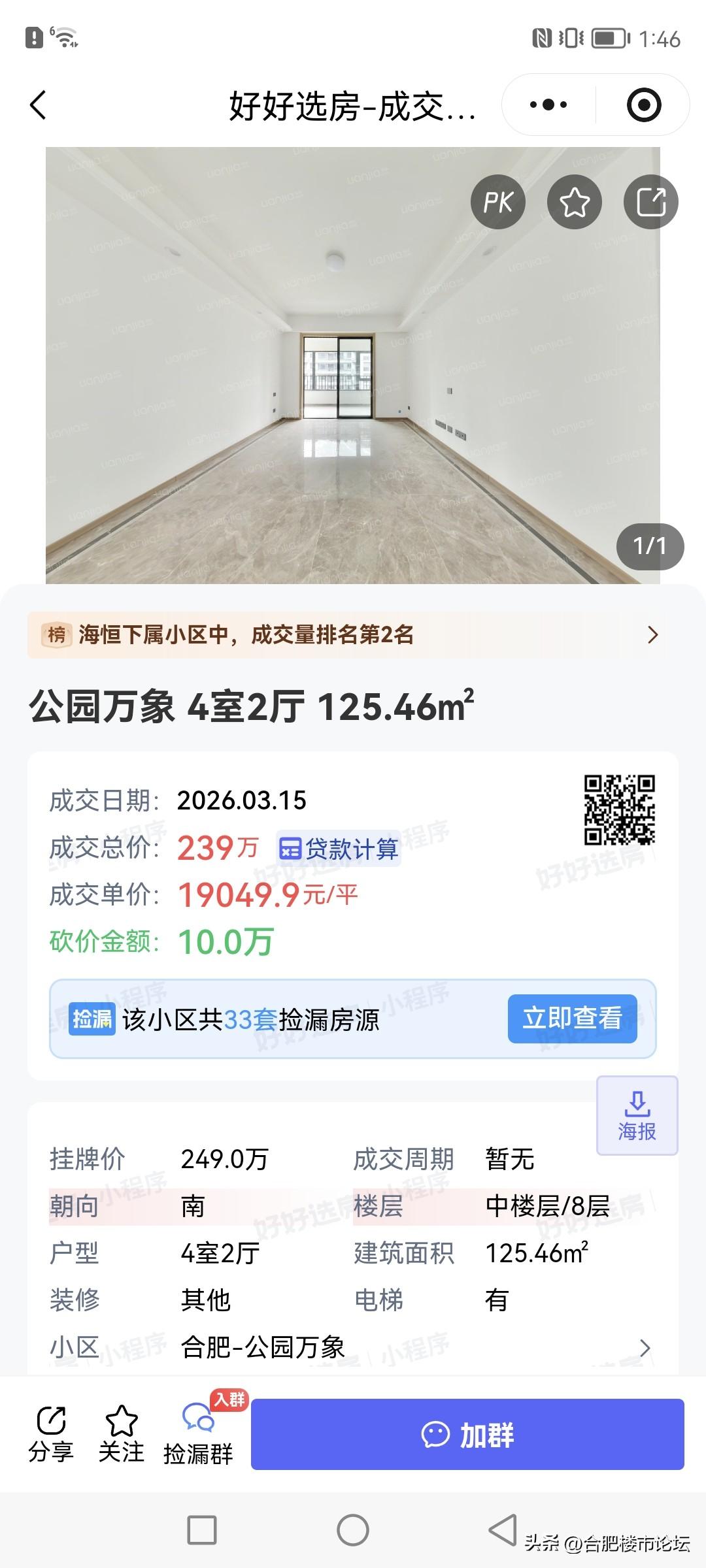 合肥最新一些热门小区的成交。 高新区西子曼城也破了首开价格了,单价九千,就是18年左右高新区的价格,后面两年是翻成几倍了。 肥西华南城现在四十多万了。公园万象洋房单价一万九。 有钱人买置地的大平层,中国府。