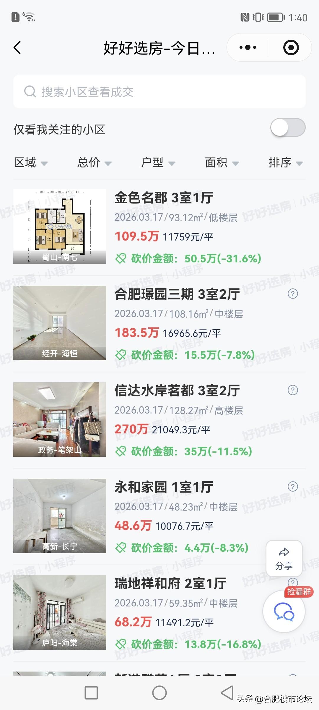合肥最近成交的二手房。 成交量的确多。