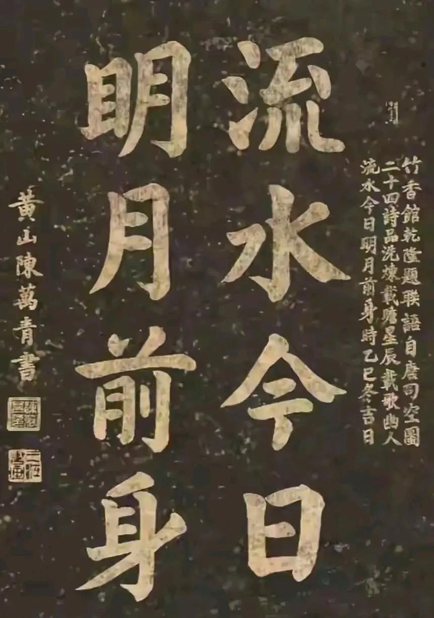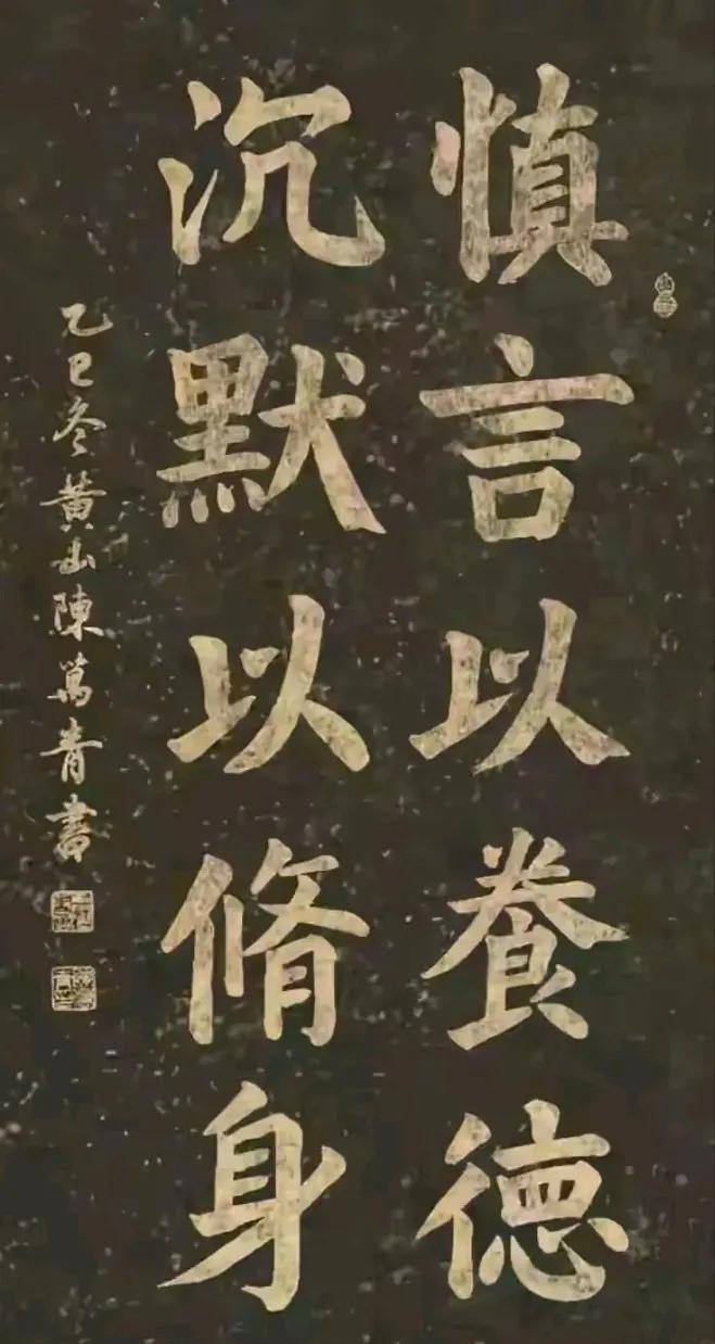 卿言“屋漏痕、锥画沙、折钗股”,陈万青运笔深得颜真卿之精髓。这几幅作品堪称绝妙,厚重中透着温润,每一笔似都在诉说:凡事忌满,万事求缺。愿我们皆能于进退间,守好分寸,留有馀地。