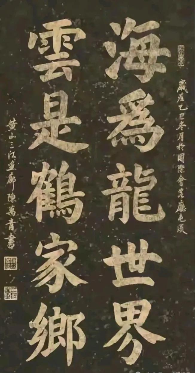 卿言“屋漏痕、锥画沙、折钗股”,陈万青运笔深得颜真卿之精髓。这几幅作品堪称绝妙,