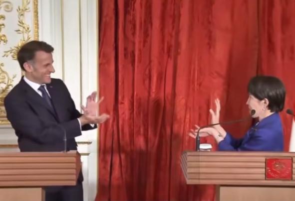 高市早苗又火了! 4月1号,法国总统马克龙访问日本,和日本的政治人物高市早苗一起开记者会。两人见面,握手打招呼,这都很正常。 但接下来的一幕,让所有人都看傻了。 握完手,高市早苗突然对着马克龙,双手一推,做了一个“龟派气功”的动作。就是日本动漫《龙珠》里那个经典招式。 马克龙当场就愣住了,完全没反应过来。他可能在想,这是什么外交礼仪?我该怎么接? 但马克龙毕竟是见过大场面的人。为了不让场面太尴尬,他硬着头皮,也学着高市早苗的样子,比划了一个“龟派气功”的动作回去。 于是,在全球媒体的镜头前,一位法国总统和一位日本政要,就像两个动漫迷一样,互相发起了“龟派气功”。这场面,真是让人瞠目结舌。 高市早苗为啥要这么做?有人说,她可能是想展示日本的动漫文化,让气氛轻松点。也有人说,这在外交场合显得太随意,不够庄重。 马克龙的回应也挺有意思。他明明很懵,但还是配合了。这大概就是所谓的“外交风度”吧,就算心里觉得奇怪,面上也不能让人下不来台。 这件事很快就在网上传开了。大家讨论得很热闹。有人觉得好玩,说这很“日本”,不按常理出牌。也有人觉得,正式场合还是应该严肃点。 不管怎么说,这确实成了今年外交场合里一个让人印象深刻的名场面。它让人看到,政治家也是人,也会有这种意想不到的互动。至于到底是幽默还是失礼,就看每个人怎么想了。