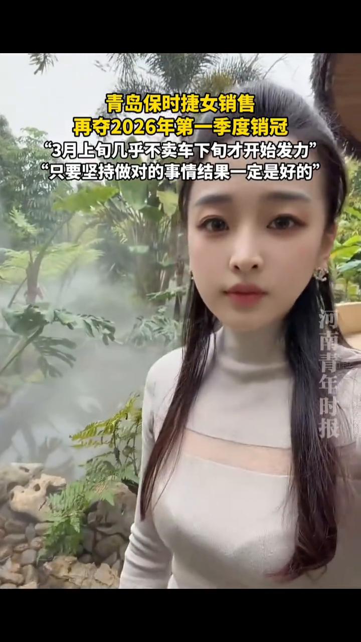 青岛保时捷女销售再夺2026年第一季度销冠。 河南青年时报。 4月1日,青岛保时捷销售牟倩文molly发文:"3月上旬几乎不卖车,下旬才开始发力,追回了销冠,人生也许就是这样,只要坚持做对的事情,结果一定是好的,4月加油。值得一提的是,牟倩文此前在1月份和2月份均拿下销冠。