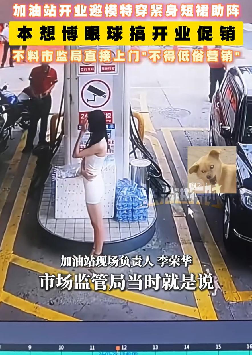 广东东莞,一加油站新站开业,为此专门请了几名身穿紧身短裙的女模特助阵,倒是吸引了不少车主专程前来加油,可这也引起了市监局的上门,对此,加油站负责人当场改口:这不是油模,这是礼仪小姐 现场视频里,几位姑娘身材高挑,穿着相当抢眼,就站在加油机旁边,也不干别的,光是往那儿一站,就成了一道活招牌 不过热闹归热闹,没多久市监局的工作人员就上门了。在他们看来,这种宣传方式已经有点低俗营销的意思了,特意过来提醒。加油站负责人反应也快,当场就改了口,说这不是什么油模,就是礼仪小姐。同时他也明确表态,以后会加大优惠力度,不搞这种低俗营销了。 对此,有网友不理解:那台球室的助教呢?那拳击比赛的举牌子的和篮球比赛拉拉队呢? 说实话,这个反问确实有点意思。加油站请个模特站一站就是低俗营销,那台球室里专门陪打的助教、格斗场上穿得清凉的举牌女郎、球馆里热舞暖场的拉拉队,这些东西怎么界定?同样是吸引眼球的方式,有的被默许,有的被叫停,标准到底是什么? 其实仔细想想,问题可能不在于穿什么,而在于场景合不合适。加油站本身是个跟安全、跟公共秩序强相关的地方。车主加油的时候,注意力应该放在操作规范和安全事项上 这时候突然出现几个穿着过于醒目的模特站在加油机旁边,画面本身就容易让人多想,也确实容易把公共场合往某种暧昧的方向带。市监局出手,更多的可能不是针对穿着本身,而是觉得这个场合不适合搞这种视觉刺激 至于台球室、拳击赛、篮球馆,那些本身就是娱乐或竞技场所,观众的预期就是来看热闹、看表演、看气氛的。在那样的场景里,拉拉队和举牌女郎是比赛的一部分,大家心里有数,边界相对清晰。而加油站说到底是个功能性场所,是加油、洗车、买东西的地方,不是娱乐场所。把娱乐场那一套搬到这儿来,难免让人觉得用力过猛。 加油站邀模特穿短裙助阵 市监局上门