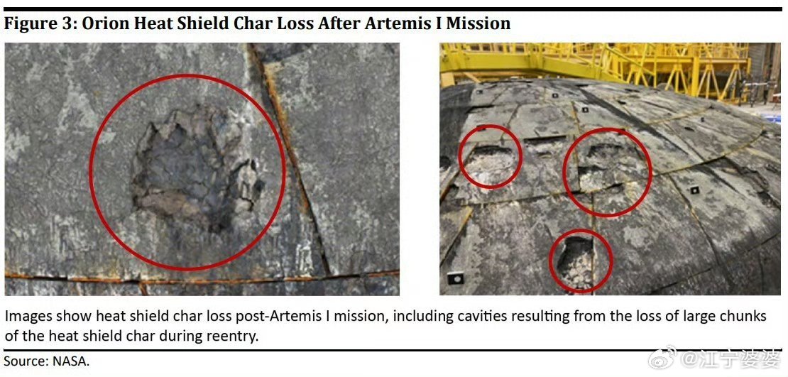 猎户座飞船一直以来最大的,始终存在的隐患问题3:飞船隔热罩有问题。