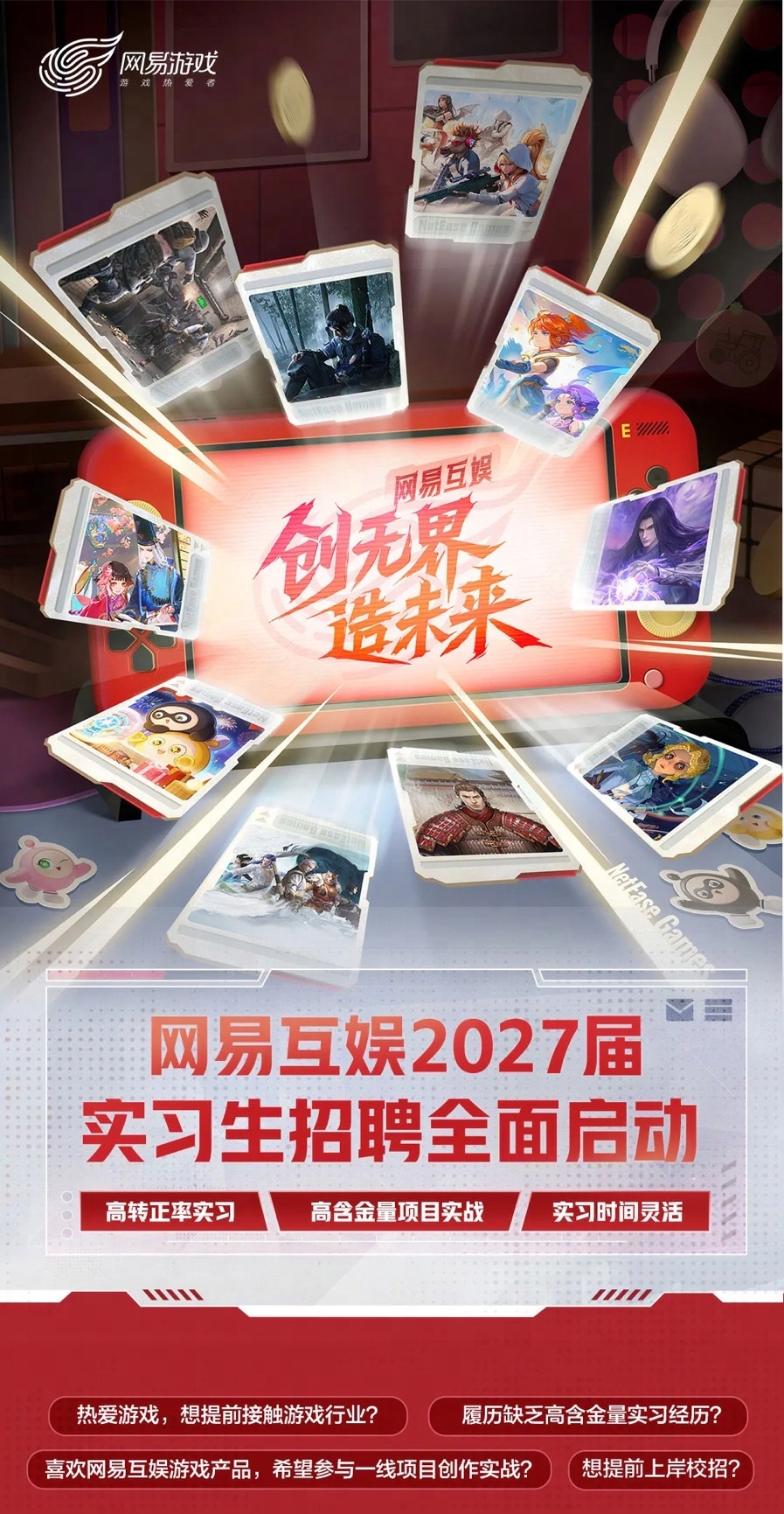 #网易提供2000个转正实习岗位#近日,网易启动2026年春季校园招聘计划。本次春招规模较往年大幅扩增,面向2027届毕业生开放近2000个转正实习岗位,职位覆盖研发、策划、美术、运营等多个方向。网易游戏校招相关负责人表示,实习生总招聘数量较去年增长70%,技术岗位招聘规模较去年翻倍,实习生整体转正率超50%,其中核心研发岗位实习转正率接近70%。去年秋季校园招聘,网易有1500名应届大学生入职。针对新加入公司的应届毕业生,网易有运营多年且成熟的“易计划”校招培养项目,不仅定制成长计划和全程的专业导师辅导,还特别设立了全封闭的实践训练mini项目。通过Mini项目实践训练,不同岗位的校招新人将组成团队,还原真实工作场景,从无到有共同完成一款互联网产品的开发全流程。该培训项目曾获得全球培训领域的最高奖项“ATD卓越实践奖”,孵化出《第五人格》等众多精品。此外,网易游戏今年还推出了“ArtSpark计划”等招聘计划,面向艺术类在校生开放概念原画、角色制作、场景编辑、特效动画、GUI、技术美术(TA)、音视频设计等岗位。网易方面表示,网易将大力招聘行业稀缺的“复合型”人才,打造既精通算法与图形引擎,又深谙游戏设计的跨界融合能力的人才团队,确保技术真正落地、给用户创造更好的体验。未来,公司将持续在垂类模型、AI原生玩法、复合型人才培养等方面保持高强度投入,培养更多具备前瞻视野、跨界能力的数字内容产业人才。#网易技术岗位招聘规模翻倍#