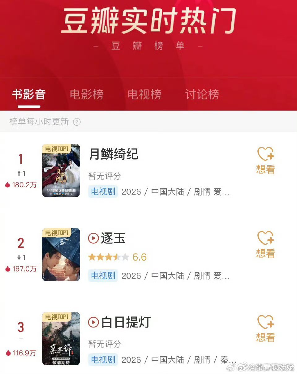 月鳞绮纪登顶天啊,月鳞绮纪昨天刚上线,今天就各个平台各项数据登顶了,优酷热度也7000+了,走势一切向好。月鳞绮纪