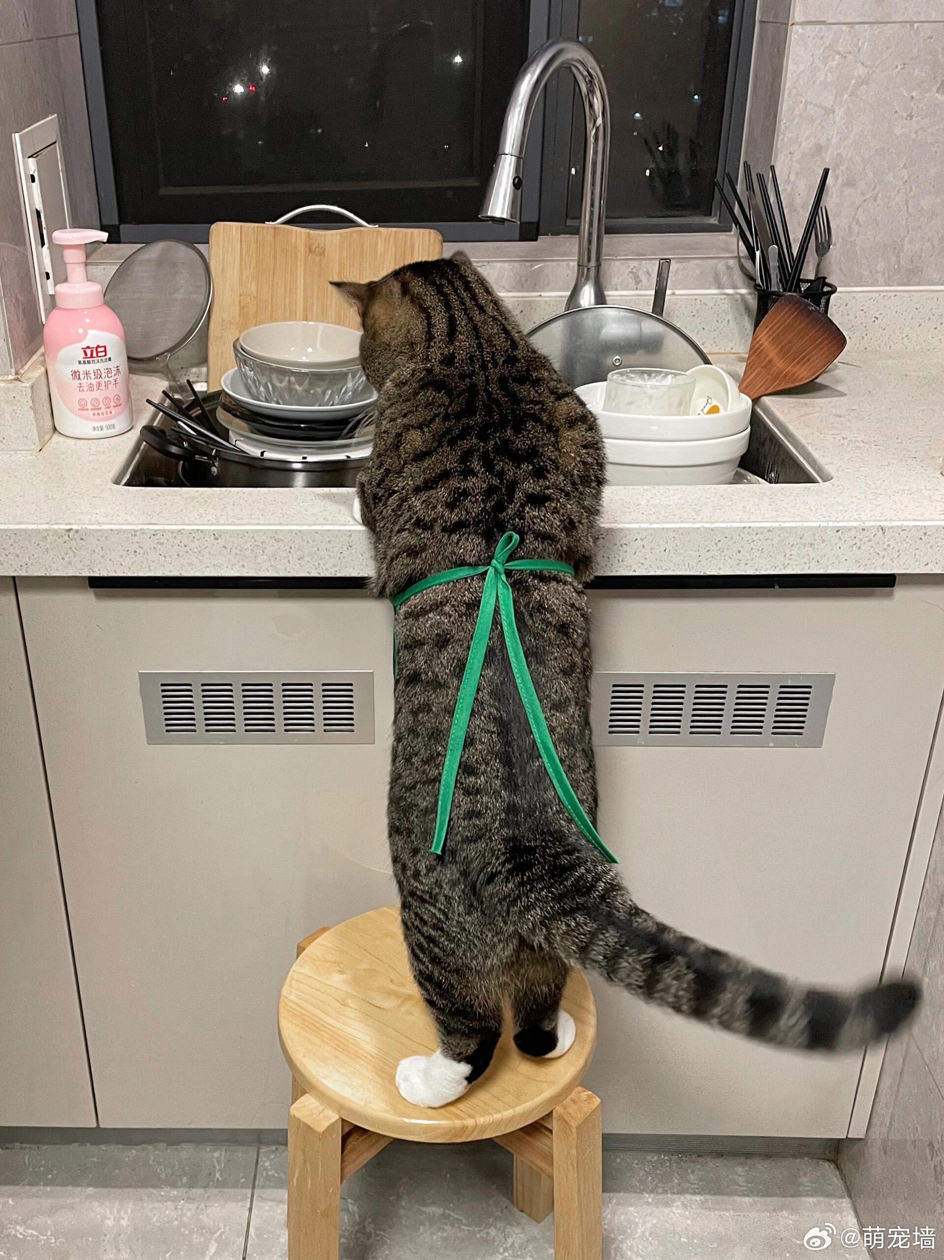 这年头愿意主动做家务的猫咪不多了!!!大学生毕业做保洁半年挣回四年学费大学毕业后