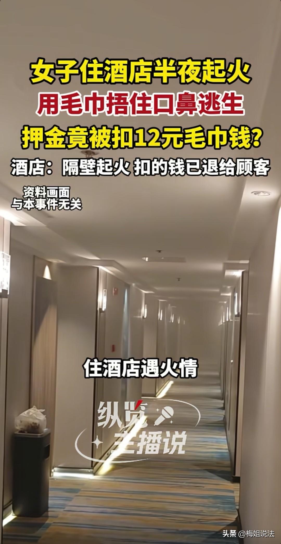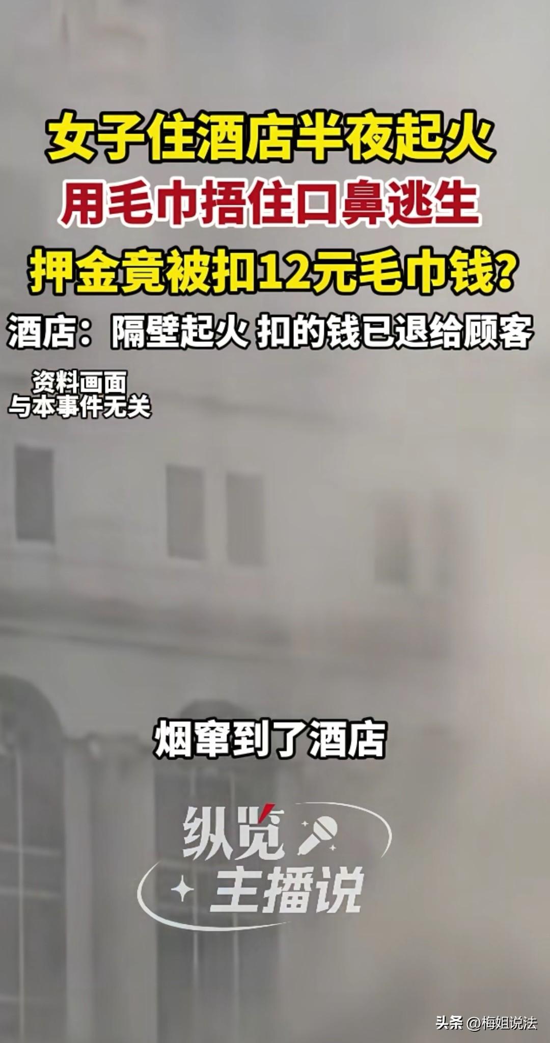 湖南益阳,女子在酒店住宿,半夜浓烟涌进房间,她吓得赶紧穿鞋,拆开毛巾用水打湿捂住口鼻逃出。因为没出啥事,女子就没计较了。没想到第二天退房,店方居然扣了她12元毛巾钱,给出的解释更让她气愤。 女子在益阳游玩,回酒店很晚。当天她在景点拍了很多照片,就躺在床上整理相册。 突然,女子闻到一股烟味,四处查看房间,也没找到着火点,女子又继续躺着整理,此时烟味越来越大,已经肉眼可见烟雾从窗户、门缝进来了。 失火了,女子下意识赶紧下床穿鞋。 女子平时学过一些消防应急知识,就四处找干净的布,看到了酒店的毛巾,哪还管那么多,保命要紧,拆开毛巾冲进卫生间,打开水龙头把毛巾打湿。 此时房间烟雾更大了,她小心地开着房门,捂住口鼻,弓腰沿着墙根跑向消防通道,消防门口居然放着拖把等杂物,她来不及多想,终于安全到达一楼大厅。 女子这才惊魂未定地看着四周,然后向前台说明失火情况。 前台可能早已了解情况,平静地安慰她,请您放心,是隔壁店家失火,烟雾窜进来的,咱们店没事。 女子总觉得哪里不对,但是反正自己没啥事,在店外溜达一圈后回到了房间。 房间里此时还残留着一些烟雾味道,开窗通风后,她无意看到天花板上的烟感,怪了,那么大的烟雾,烟感没反应?走廊的报警也没启动?门口还放杂物。 女子觉得,这家店消防意识太差了吧。就算不是店里失火,万一火窜过来引燃了呢,总之得有消防人员通知撤离吧,而且是大半夜了,如果自己睡的早,还不知道引起多大的后果。 女子想着很生气,决定明天不再续住。 第二天,女子到前台退房。 没想到,店员很有礼貌地告诉她:女士,你使用毛巾一条,在押金中扣除12元,请注意查收。 女子无语的笑出声来:扣毛巾钱? 前台微笑说,是的女士,你昨晚使用了一条一次性毛巾,物品价目表在浴室门口贴着的。 女子笑问,你说说,我为什么要使用一次性毛巾,还不是你们店的问题,大半夜的,房间进那么多烟雾,换成你,你会怎么做? 店员说,价目表张贴位置,使用时肯定也是看到的,并没有多收,还说可以把价格再给女子看看。 女子非常气愤:我说的是价格的问题吗?是在乎12块钱吗?我说的是你们店有责任,我不追究就不错了,你还收我的钱? 店员说:女士,我们店并没有起火, 是隔壁起的火,烟串到店里的,酒店是安全的,是你自己觉得有危险才使用的毛巾。 女子非常生气:你们店尽责了吗,及时通知了吗?房间进烟,谁知道是哪里失火,就算隔壁失火,烟进房间,我就要快乐地把烟吸进肚子里? 前台给领导反映,经过调解,店方退还了12元钱。 关于女子的反驳,你认为有道理吗? 《民法典》第一百八十二条:因紧急避险造成损害的,由引起险情发生的人承担民事责任。 房间进了烟雾,女子为了生命安全,拆了毛巾,本身就是紧急避险行为,而且没有采取措施不当或者超过必要的限度,更没有造成不应有的损害,女子不需要支付毛巾费用。 《民法典》第 1198 条:宾馆、商场、银行、车站、机场、体育场馆、娱乐场所等经营场所、公共场所的经营者、管理者或者群众性活动的组织者,未尽到安全保障义务,造成他人损害的,应当承担侵权责任。 烟雾进入客房,店方未及时疏散、未提供应急物品,而且消防设施没启动,消防通道不畅通,显然店方未履行安全保障义务,如果女子的财产和人身受到损失,店方理应承担责任。 所以女子不但可以要回12元毛巾费用,也可以主张店方承担侵权责任,全额退房费。 虽然该店的行为让人气愤,但是女子在危险状态下,冷静的消防逃生意识值得学习。 你到公共场合会特别留意消防出口吗?