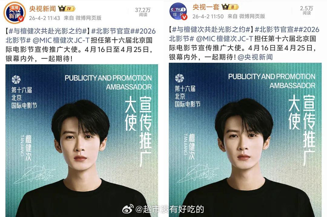 檀健次北影节宣传推广大使今日官宣排面🈶多家媒体➕央视官媒助阵实力派演员的影响号