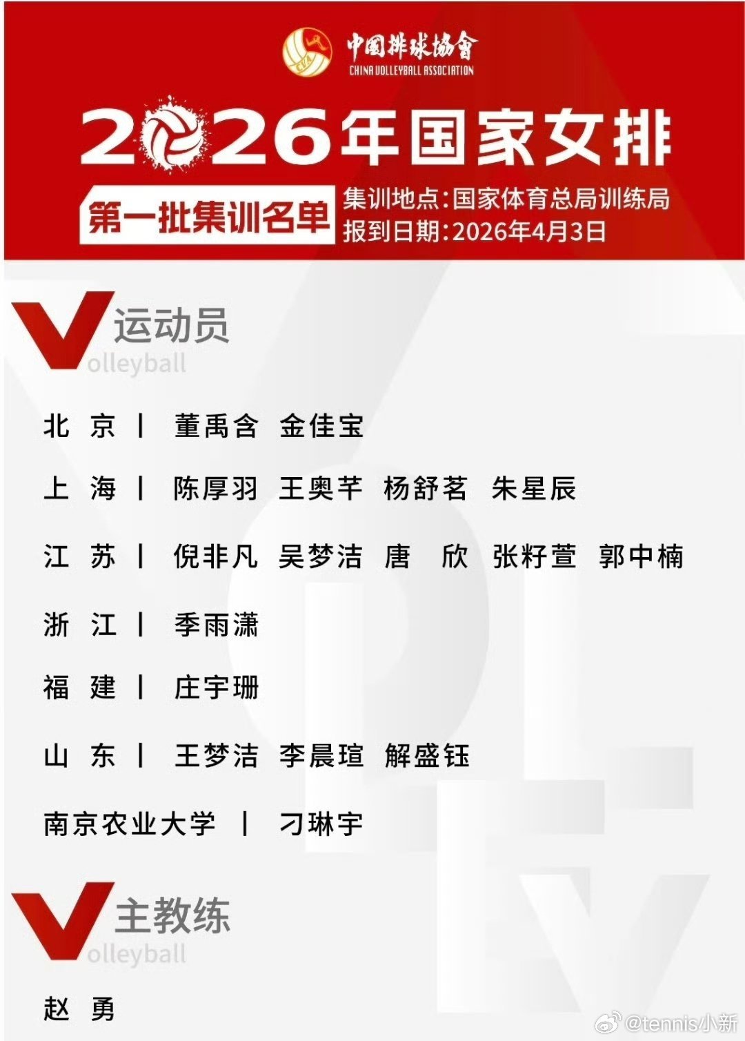 好久不见,甚是想念中国女排 中国女排2026年集训名单