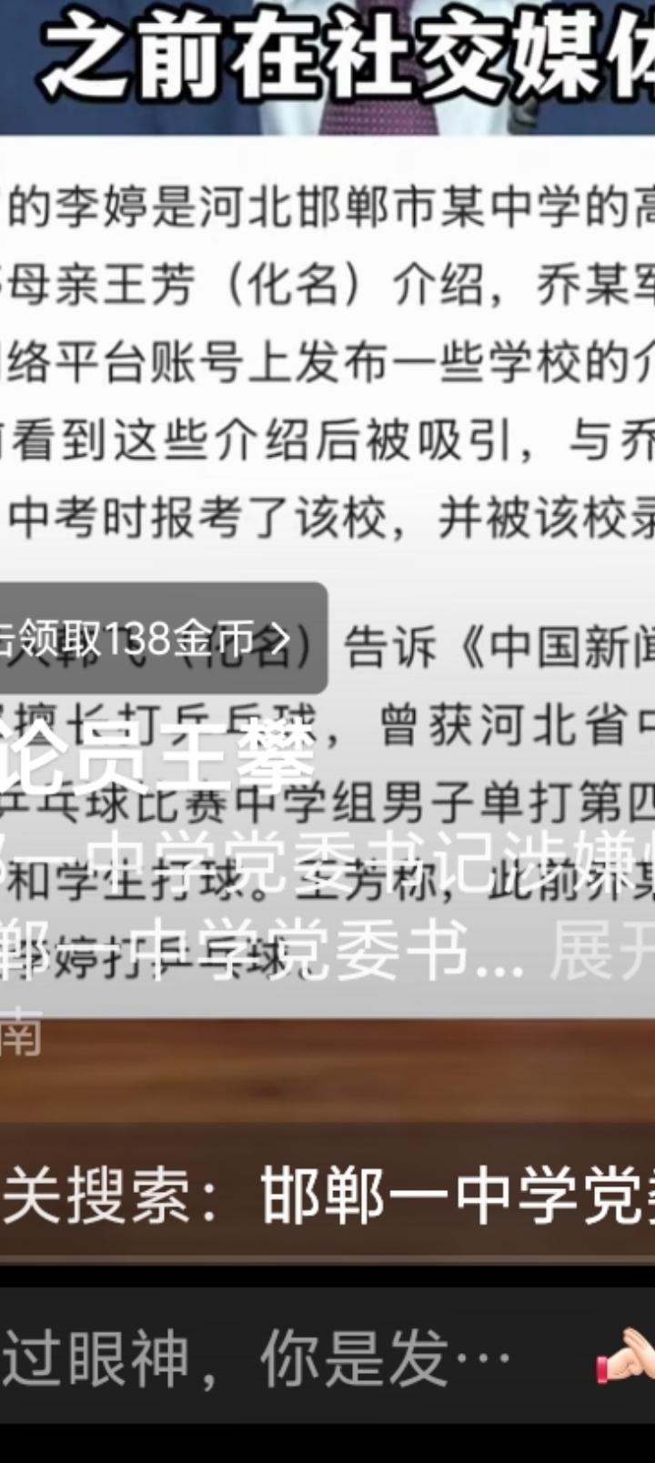 人面兽心,枉为人师! 邯郸七中党委书记像模像样,曾经在给全区同行经验介绍,又名有份! 他的业余爱好也很阳光,乒乓球打得不错,在同行中名次也是靠前的,正是这个爱好成了害人的挡箭牌! 作为学校领导,学生师长,教给学生打乒乓球,是很正常的事,可是他约15岁女生打球,借休息的时候对女生性侵,真是禽兽不如! 纸里包不住火,女孩母亲发现了端倪,这个禽兽被绳之以法! 女孩子一定要洁身自好,不可以单独与男性在一起,一旦遇到衣冠禽兽后悔晚已! 身为老师,作为学校领导对未成年的女孩下手太卑鄙,道德沦丧,禽兽不如! 女孩受到的创伤怎么弥补,怎么走出阴影?