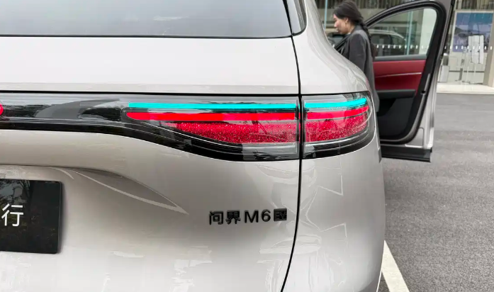 到店实拍问界M6:体量感不输M7,细节都是加分项 从实际观感上来看,虽然问界M6整体尺寸要比M7小上一圈(前者车长不到5米,轴距2950mm,而M7则是比较标准的“532”级别,车宽1999mm),但给人的第一感官是问界M6体量感并不输给问界M7,尤其是同样斜45度角。 同时,因为细节设计上的不同,问界M6少了几分成熟、稳重的感觉,多了一些动感和精致化的点缀,这些让几位刚看了M7、M8、M9的女性消费者直呼:是比其他车可爱一些,按照四川话就是“是有点乖喃”——关键在于M6在前大灯组上半部分增加了晶钻式的点缀,同时前脸下半部分小蓝灯区域(与进气格栅部分)在前脸面积中占比更大,也让M6前脸的视觉厚重感相比M7明显减少,这也是为什么M6第一眼看起来就更有活力的主要原因之一。 其他细节部分,车尾同样是贯穿式的设计,但灯组并非完全贯穿,而是在中间的Logo部分采用了红色、点亮AITO标的样式,而两侧的灯组则和前脸有所呼应,层次感特别明显;另外提升精致感的细节在于半隐藏式门把手,手放进去车门自动弹开,毕竟实拍车型也是带了电吸门的配置。 车内的部分,前排整体还是问界M系列的布局,实际体验这台黑红配色的内饰质感还是不错,值得一提的是副驾前方的灵感橱窗设计确实很吸睛,感觉女性用户会特别喜欢; 同时后排娱乐屏、冰箱、小桌板、椅背上的拓展接口、自动脚踏板等配置都没有缺席,车内乘坐空间部分同样完全不用担心,后排座椅靠背角度可调节范围也还算不错。 另外,提升好感的在于肩部以上到车顶的部分都用上了类似麂皮材质触感的材料,而肩部以下则绝大多数地方都是皮质包裹。 最后,我们拍这台问界M6 EV版也是搭载了前备箱,整个容积还是非常不错的,并且也是支持语音开启。