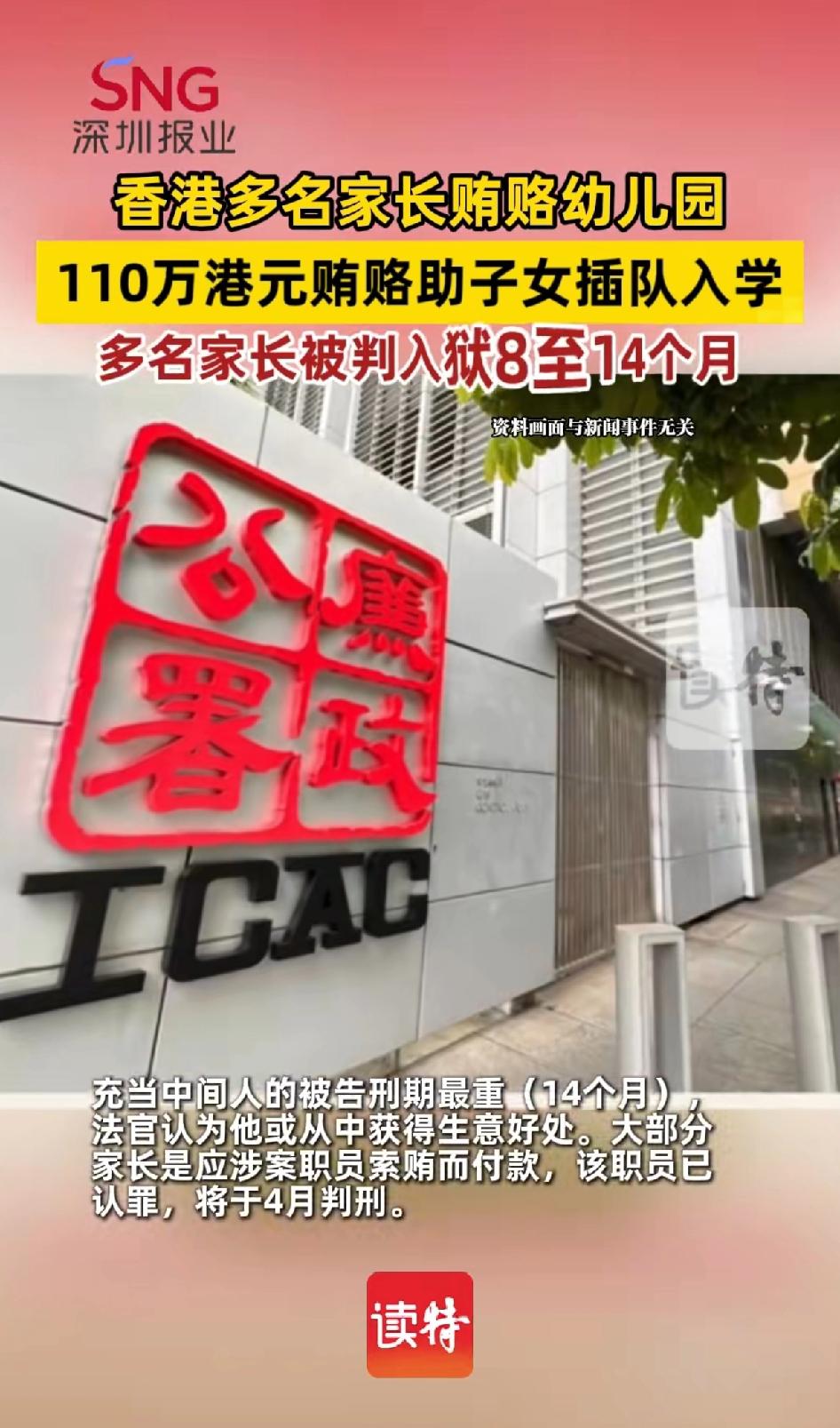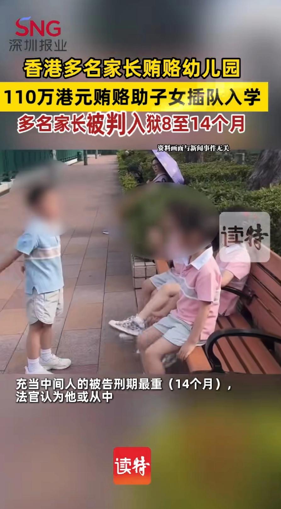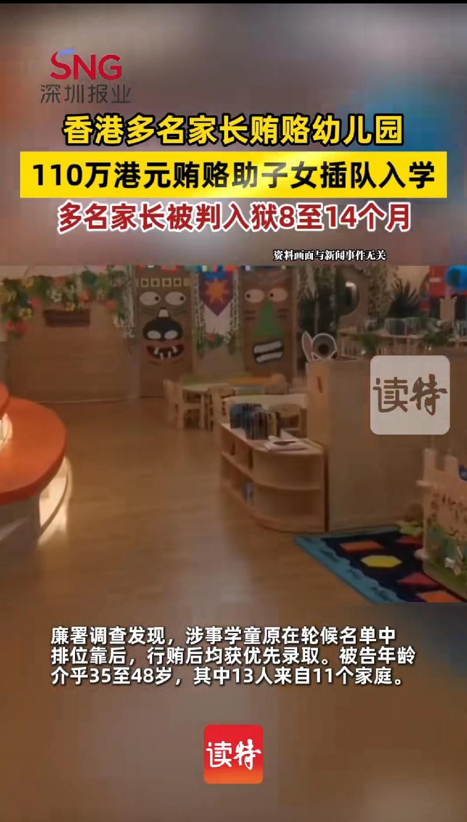 香港多名家长贿赂幼儿园,110万港元贿赂助子女插队入学,多名家长被判入狱8至14个月。 香港这起家长贿赂幼儿园事件真是让人惊掉下巴!13名家长和1名中间人,为了让孩子插队入学,给幼儿园行政主任送了约110万港元。这些家长出手阔绰,贿款从两万到20万港元不等。 原本孩子在轮候名单靠后,交钱后就优先入学。结果呢,14名被告都被判入狱8至14个月。这其中还有家长主动拉人下水,想让朋友孩子也走捷径。 可怜天下父母心可以理解,但用贿赂这种不正当手段,不仅自己入狱,还给孩子树立了坏榜样。教育本应公平公正,这种行为实在是破坏了规则,大家可别学啊!
