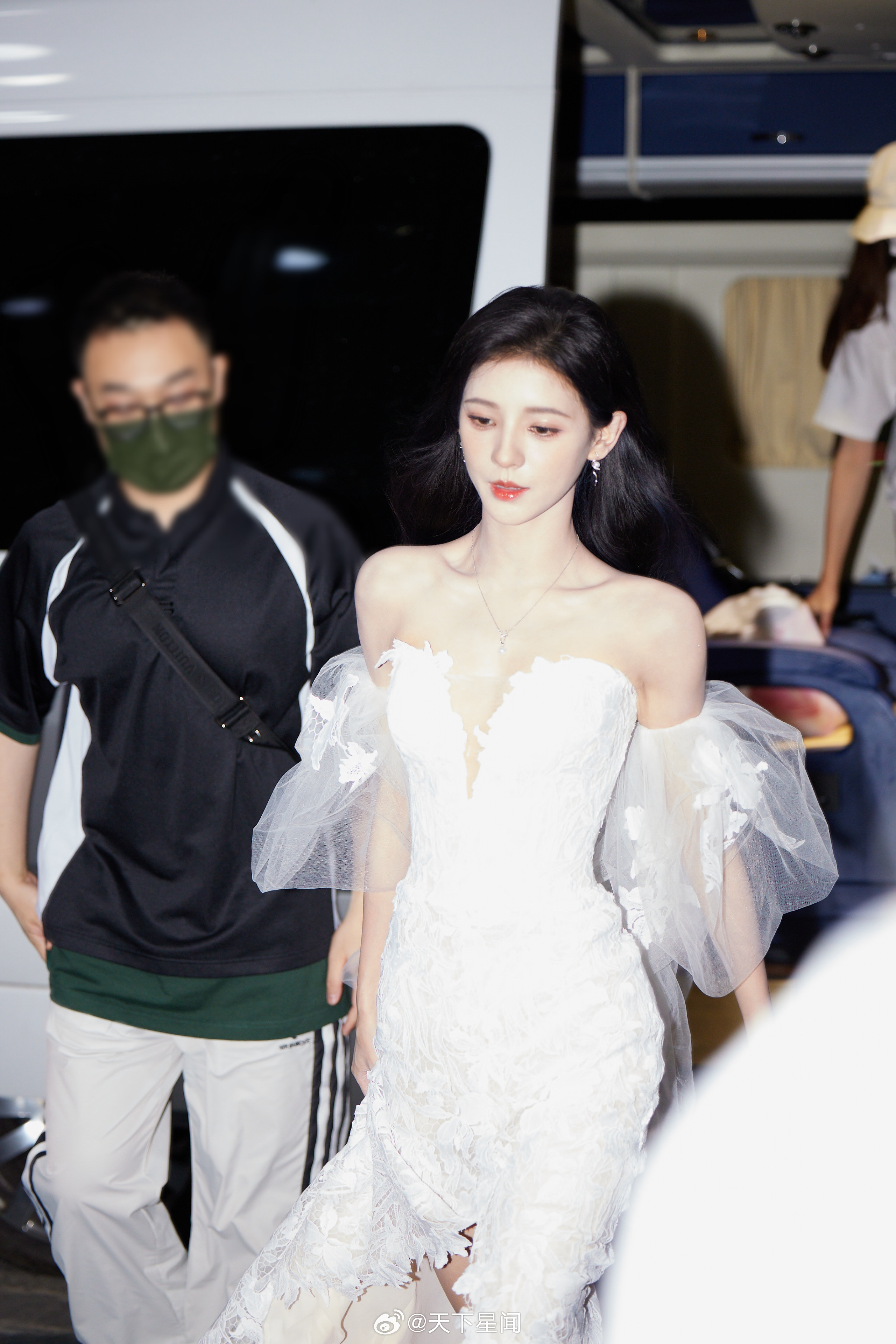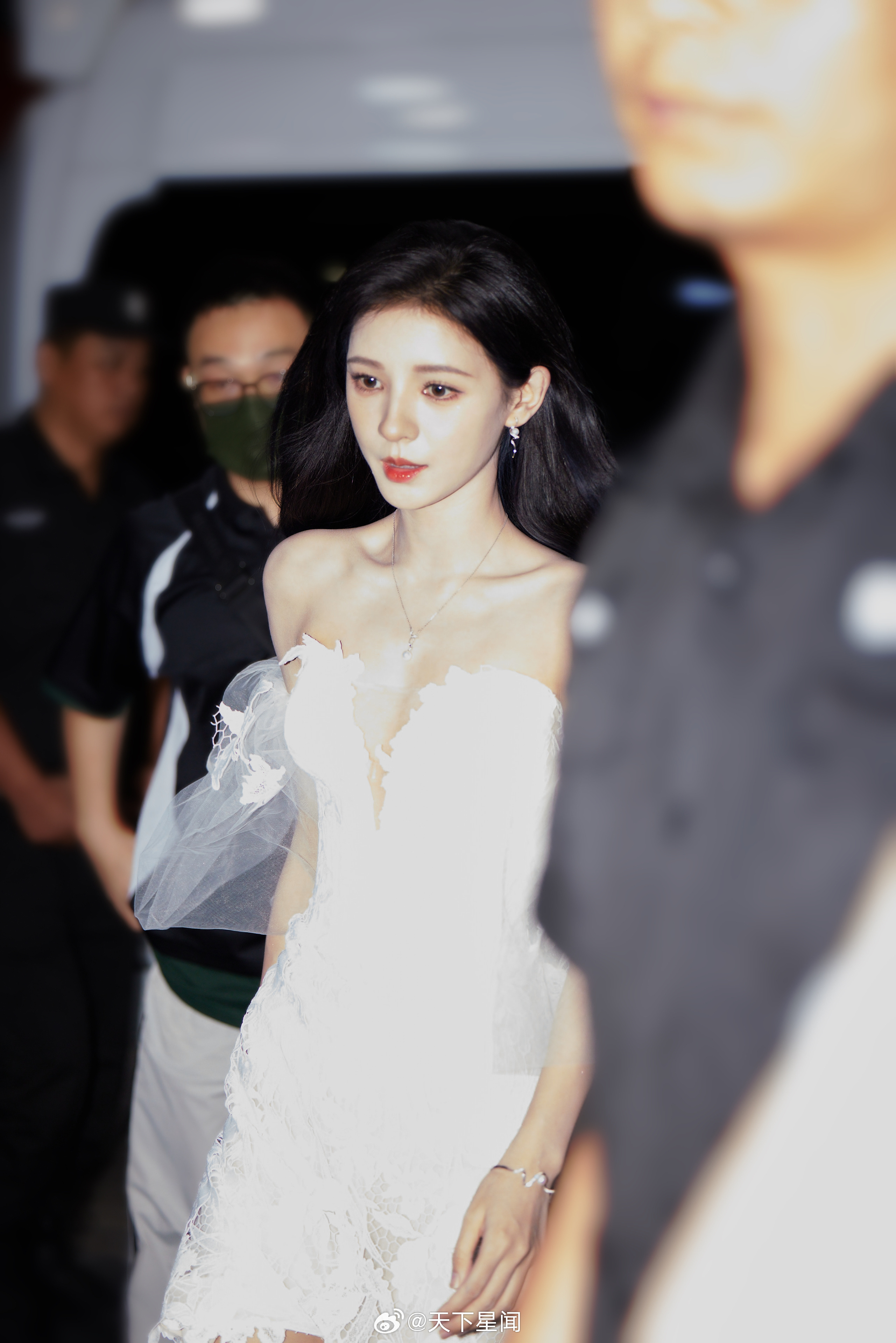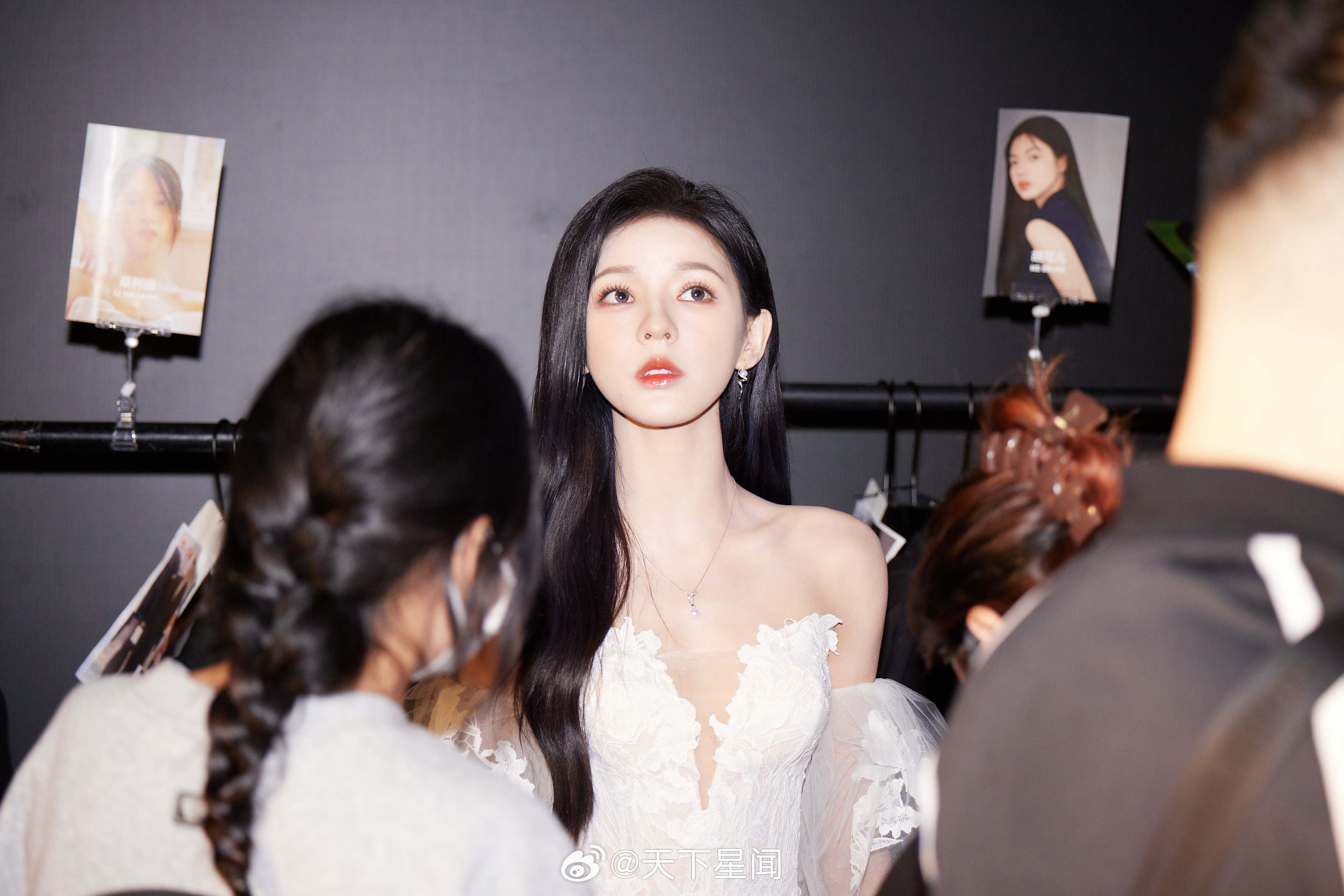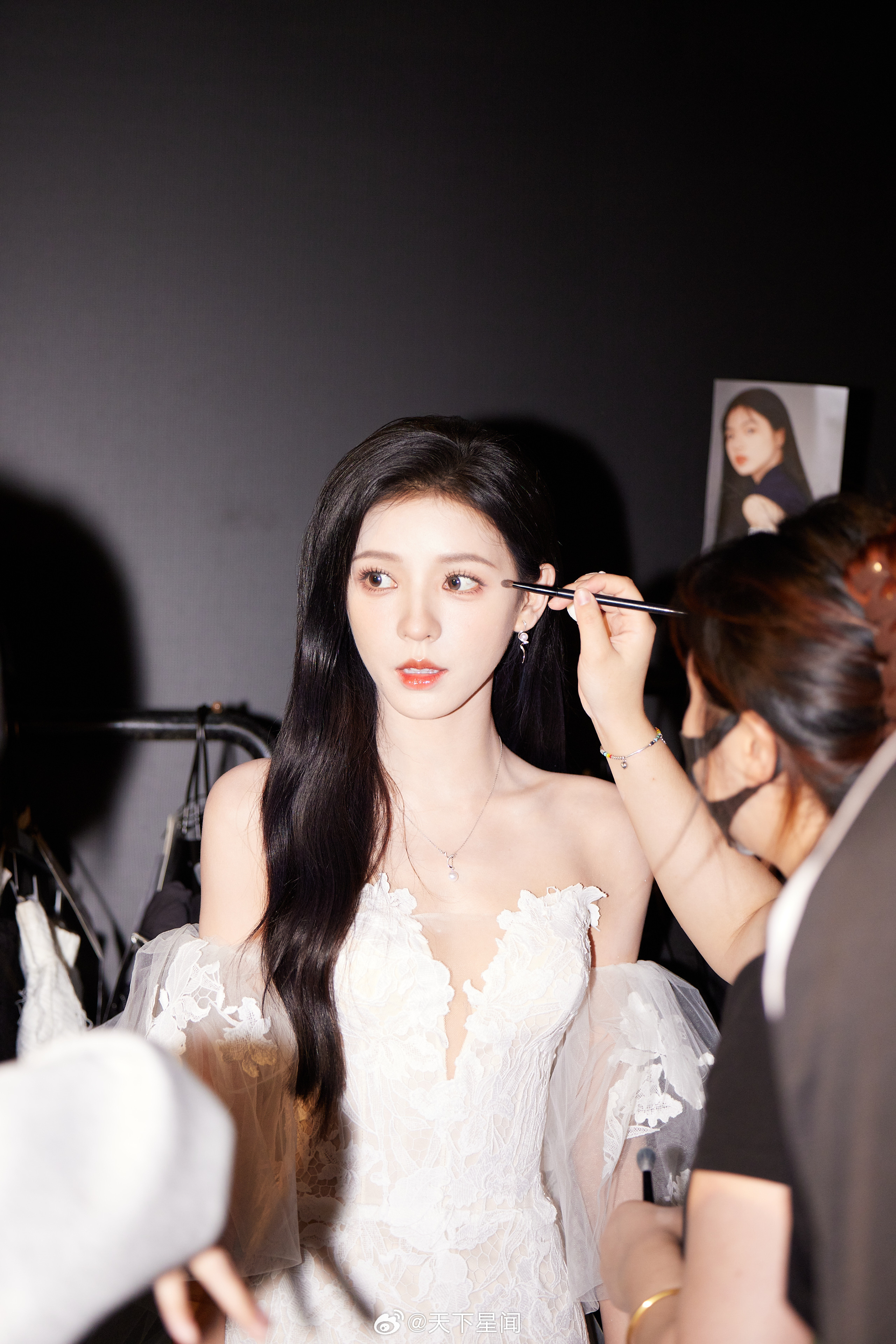 粉紫灯光下的张予曦,是自带柔光滤镜的舞台精灵[比心]露肩白纱裙勾勒出优雅肩线,手