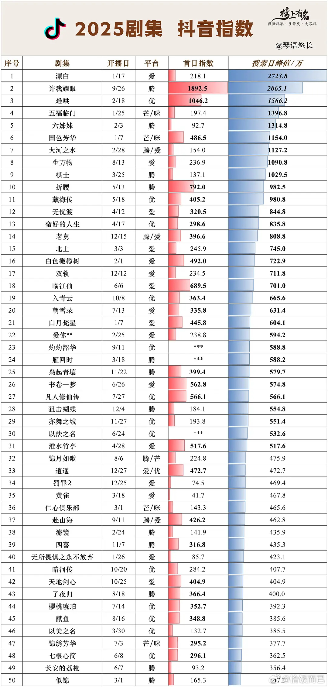 月鳞绮纪首日抖指1104.1w,26年已播剧断层第一,历史第三