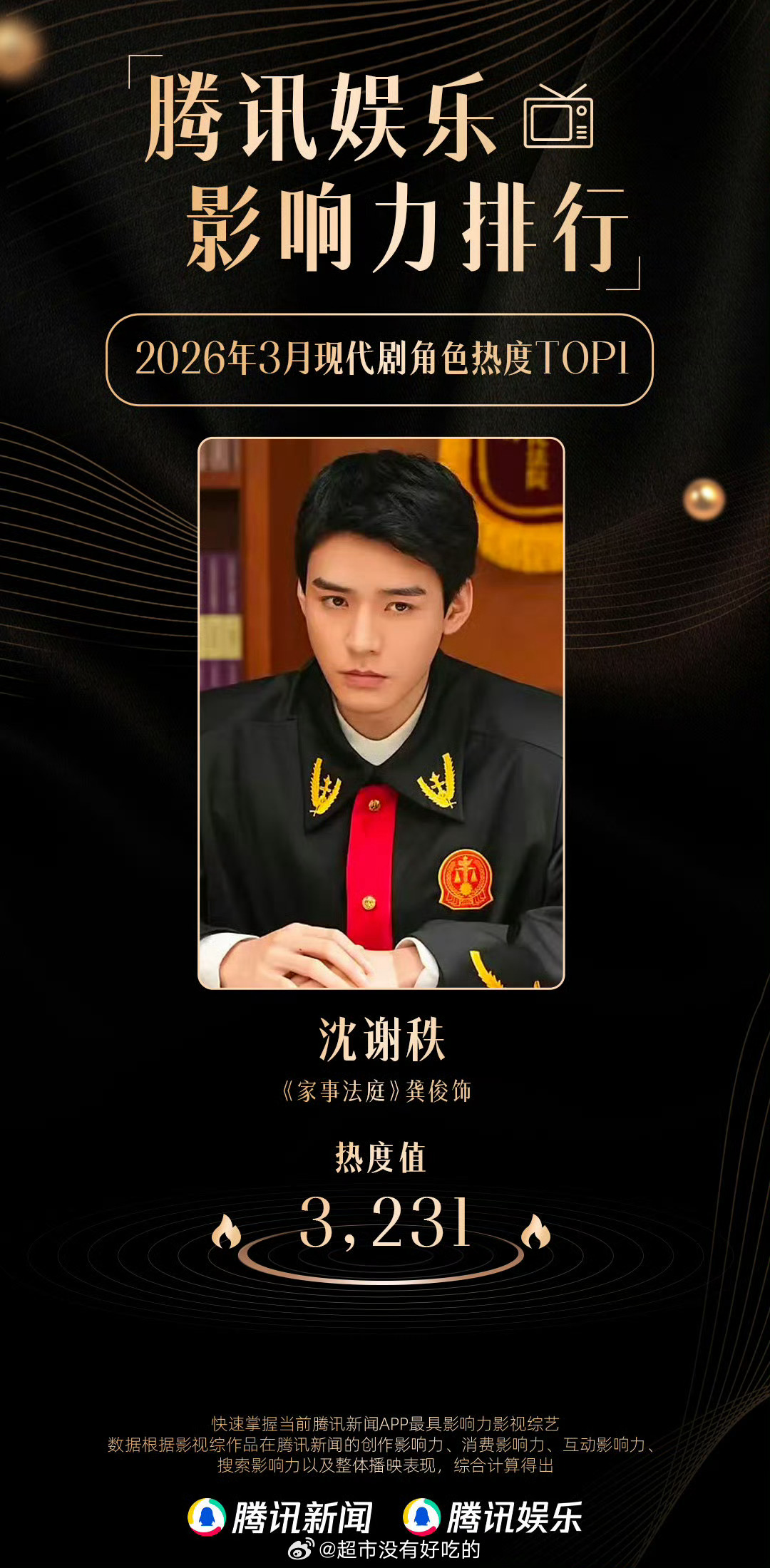 龚俊《家事法庭》沈谢秩获得腾讯娱乐影响力排行榜3月现代剧角色冠军《家事法庭》也拿下3月电视剧热度TOP9恭喜龚俊龚俊龚俊