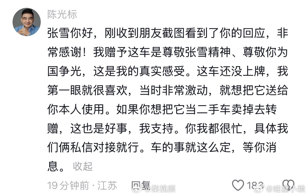 讲道理,这车放着各种贬值不说,一年保险费都得几十万,虽然现在张雪身价不低,但是从作风来看应该还是比较节俭的,我支持张雪卖车捐款!陈光标回应张雪要卖车