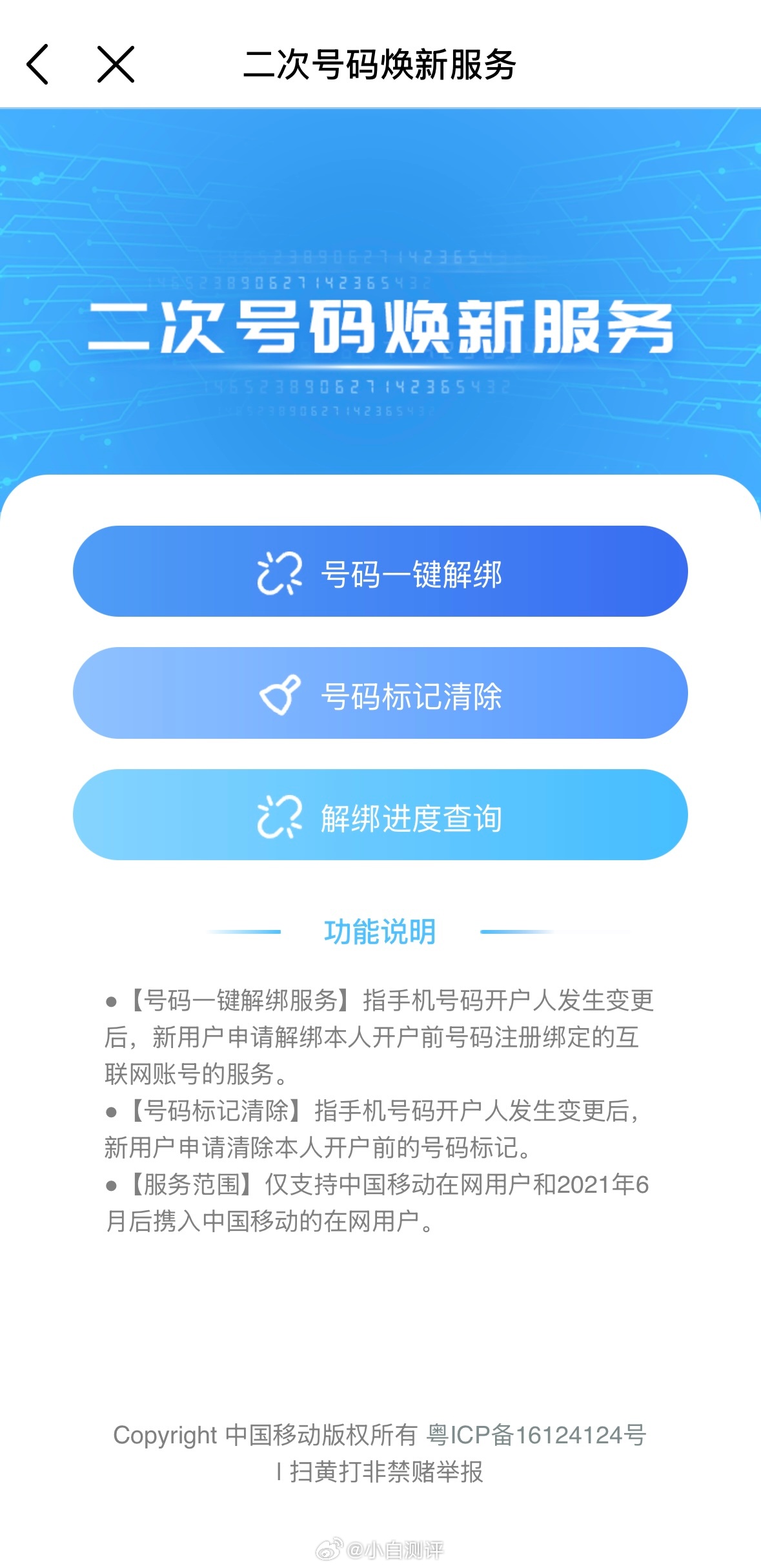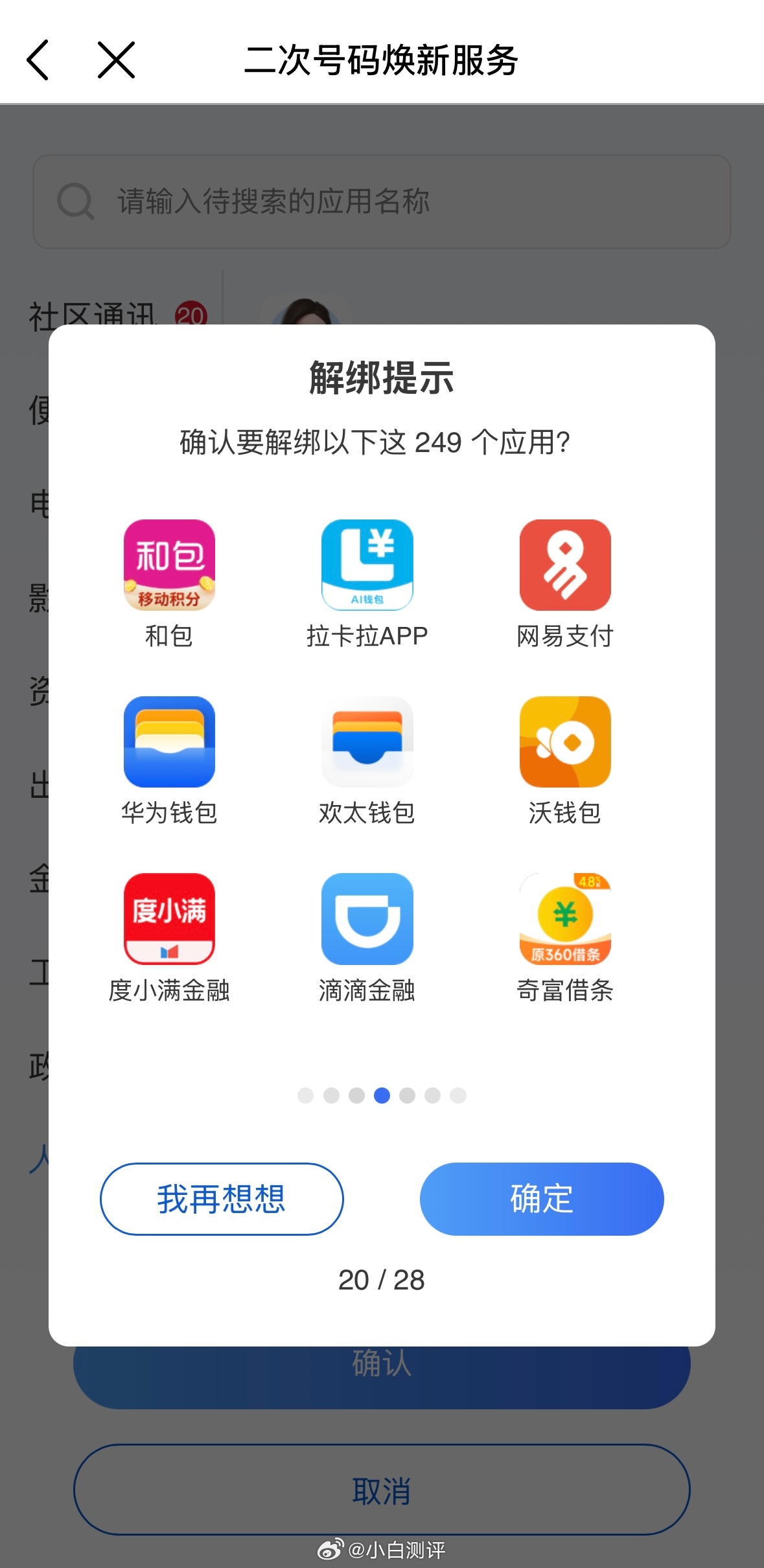 经常收到各种平台的营销广告垃圾短信和骚扰电话?又或者是买到了“二次号码”有很多遗留信息?教大家一招,可以在运营商App中搜索🔍二次号码焕新服务,查看手机号注册过的互联网账号,用不到的账号勾选解绑有点东西