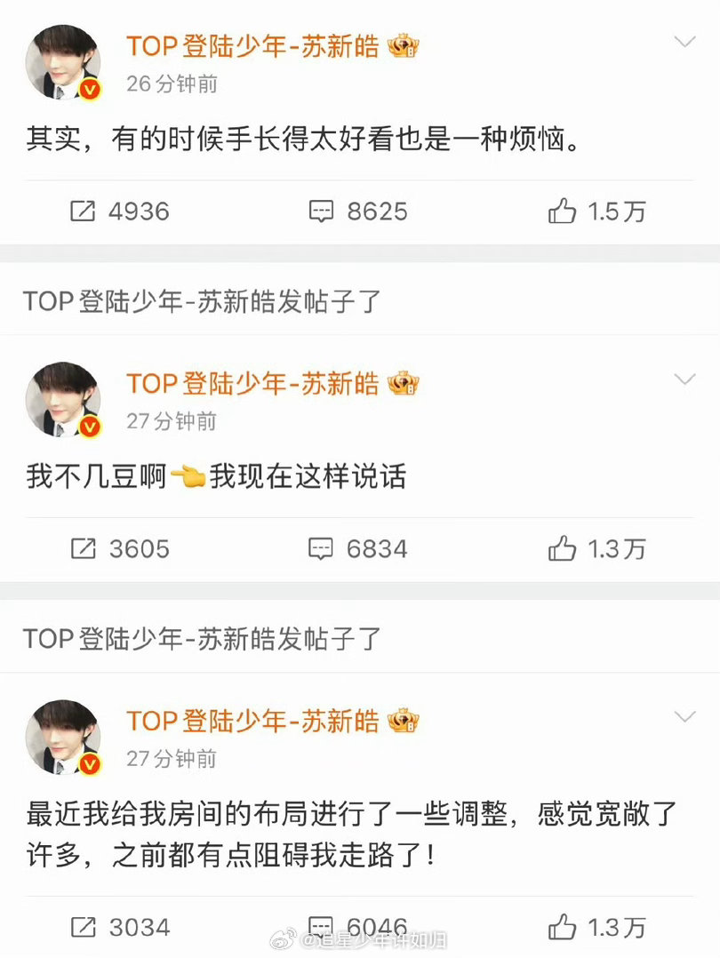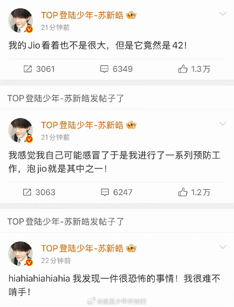 苏新皓泡脚预防感冒苏新皓在超话里唠嗑了 苏新皓超话唠嗑也太真实了吧!和粉丝分享最日常的小事:刘海长了该打理了,怕感冒就坚持泡脚,还傻乎乎说自己小小一只居然是42码,最后超开心地说要见面了,这波走心分享直接让人好感度拉满
