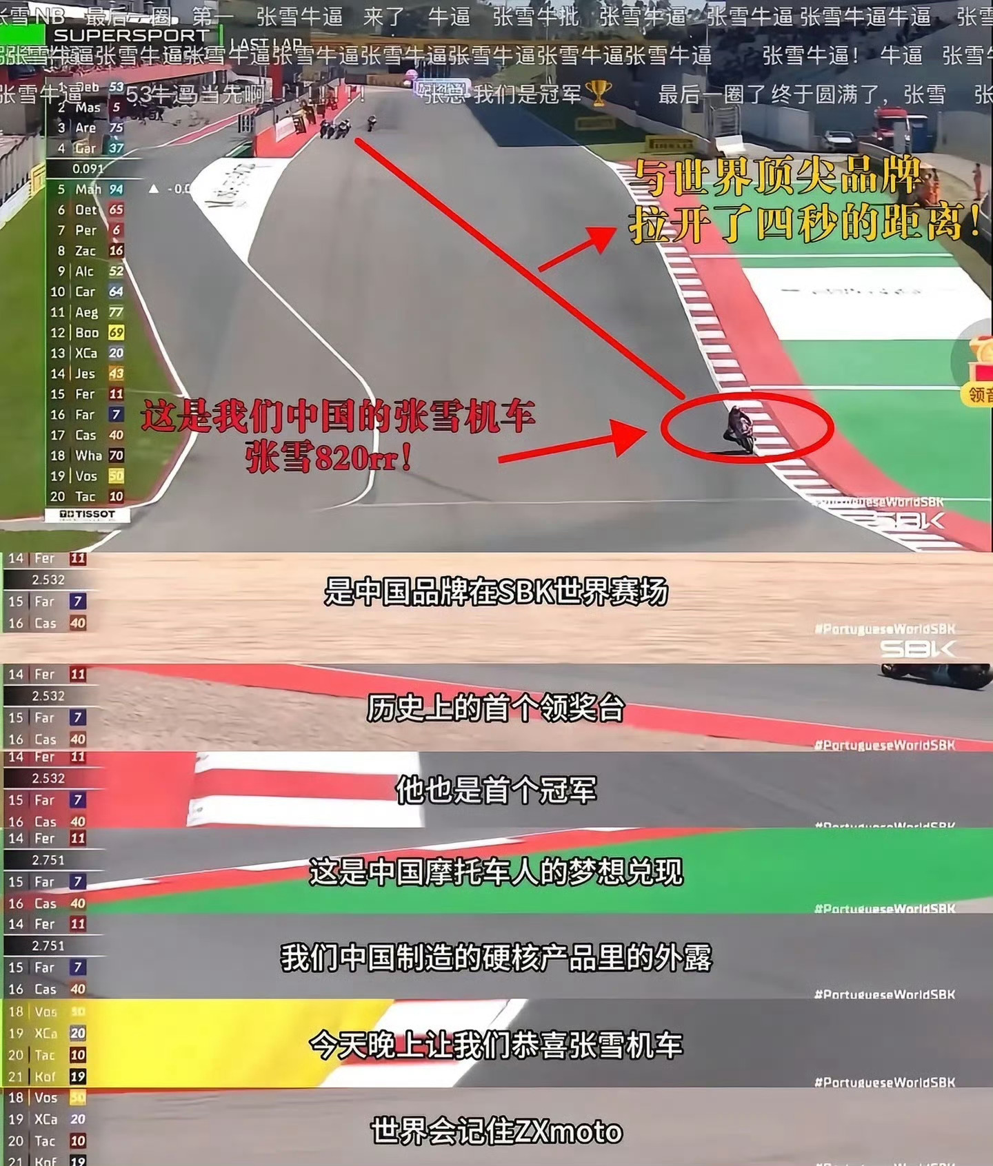 很多网友不知道张雪机车夺冠含金量,这是中国品牌、非欧美日品牌首次在该顶级赛事夺冠,五星红旗首次在WSBK最高领奖台升起,更实现碾压式胜利,首回合领先第二名3.685秒,顶级赛事0.1秒即天堑,次日再冠、全程领跑,从首站第14名到1个月后横扫,实力碾压上届冠军。