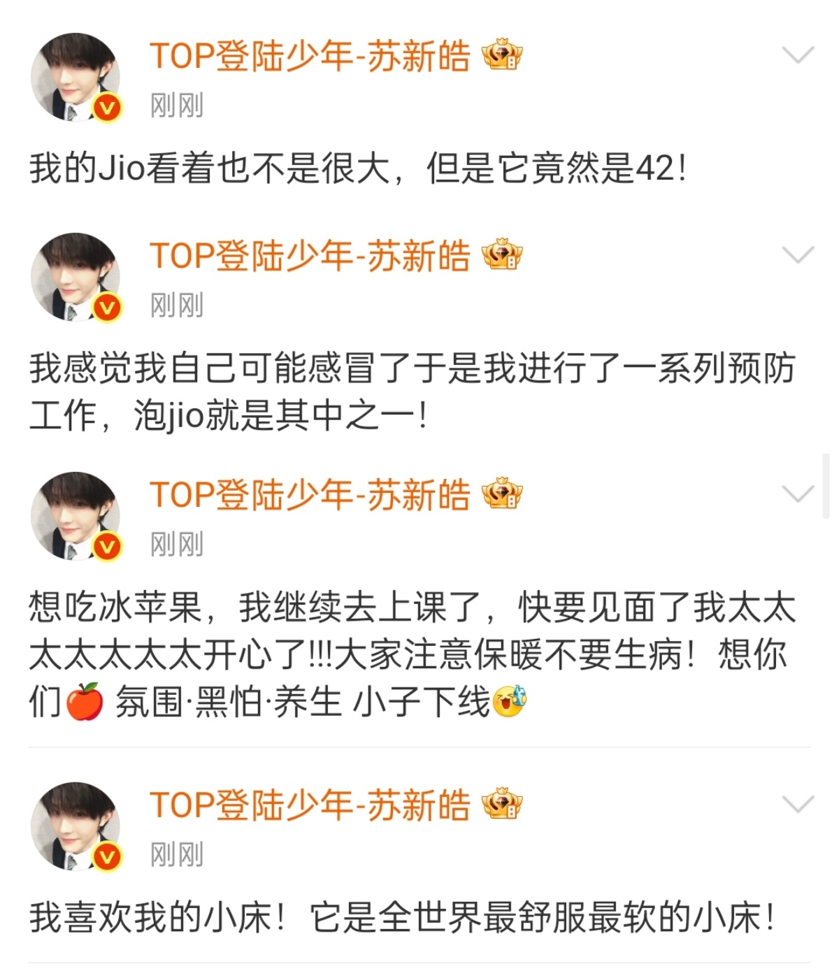苏新皓空降互动苏新皓空降超话碎碎念跟粉丝报备日常一款事业型爱豆来的!聊演唱会舞台准备+询问大家想听的歌曲+日常趣事分享+自拍照+叮嘱大家注意保暖不要生病!苏新皓一款事业型爱豆