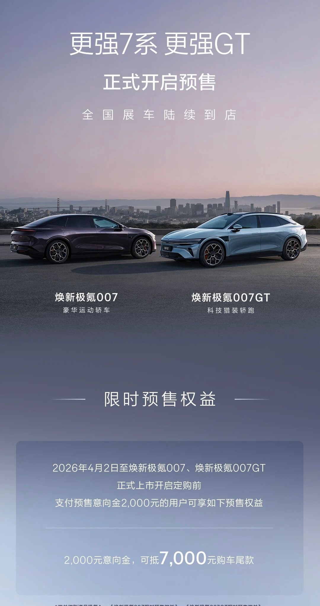 今天新款极氪007系列也预售了,主要提升三电、智驾、底盘等方面。