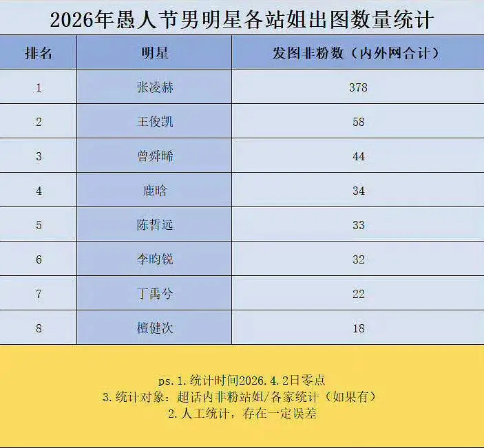 愚人节站姐团建内娱男艺人数据拉表📊张凌赫 王俊凯 曾舜晞 鹿晗 陈哲远 李昀锐