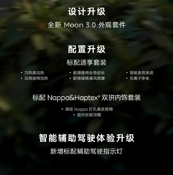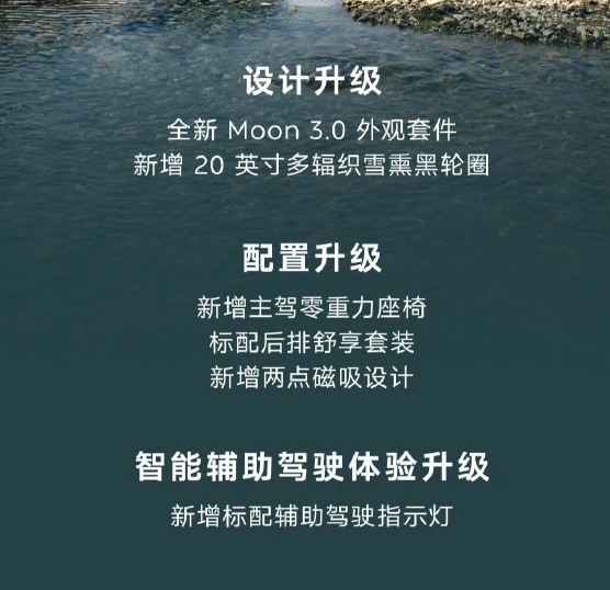 6系列是新增 Moon 3.0 外观套件、20寸新轮圈、新增辅助驾驶指示灯、标配后排适享套装、新增主驾零重力座椅等。