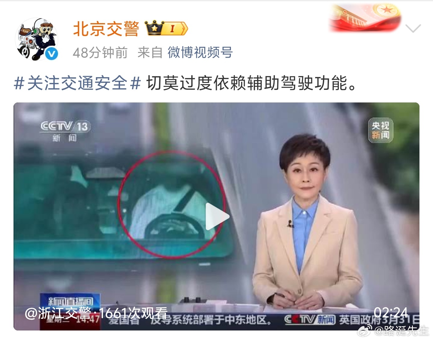 警方提醒您,驾驶人不能双手脱离方向盘,切莫过度依赖辅助驾驶。