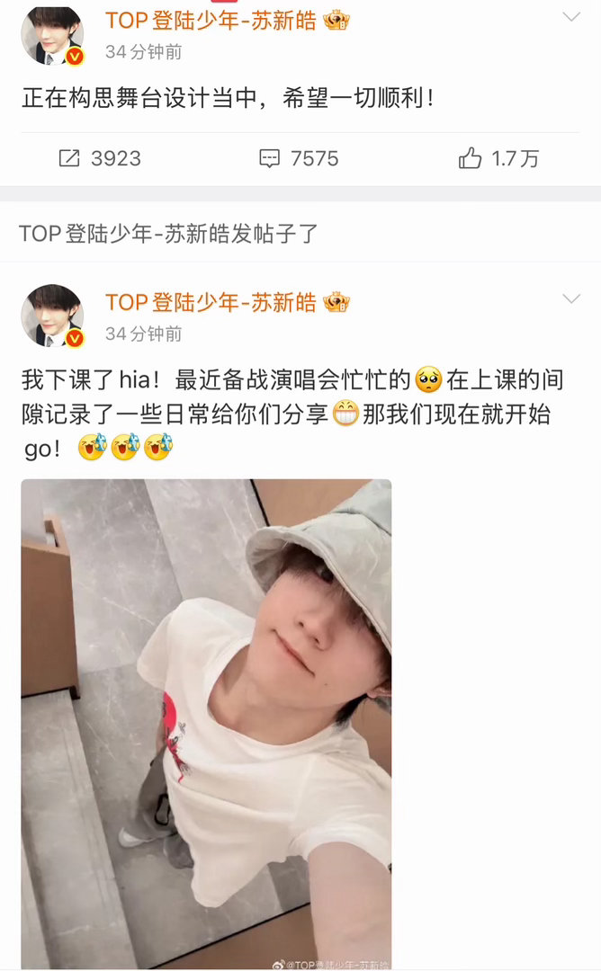 苏新皓你怎么这么乖苏新皓今天中午在超话里唠嗑啦,活该你🔥!真的宠的偶像上哪儿找!!一会在说要见面啦很开心 一会儿又说意识到好像快感冒了就赶紧泡脚 一直跟粉丝聊到上课!能不能现在把我空投到教室苏新皓