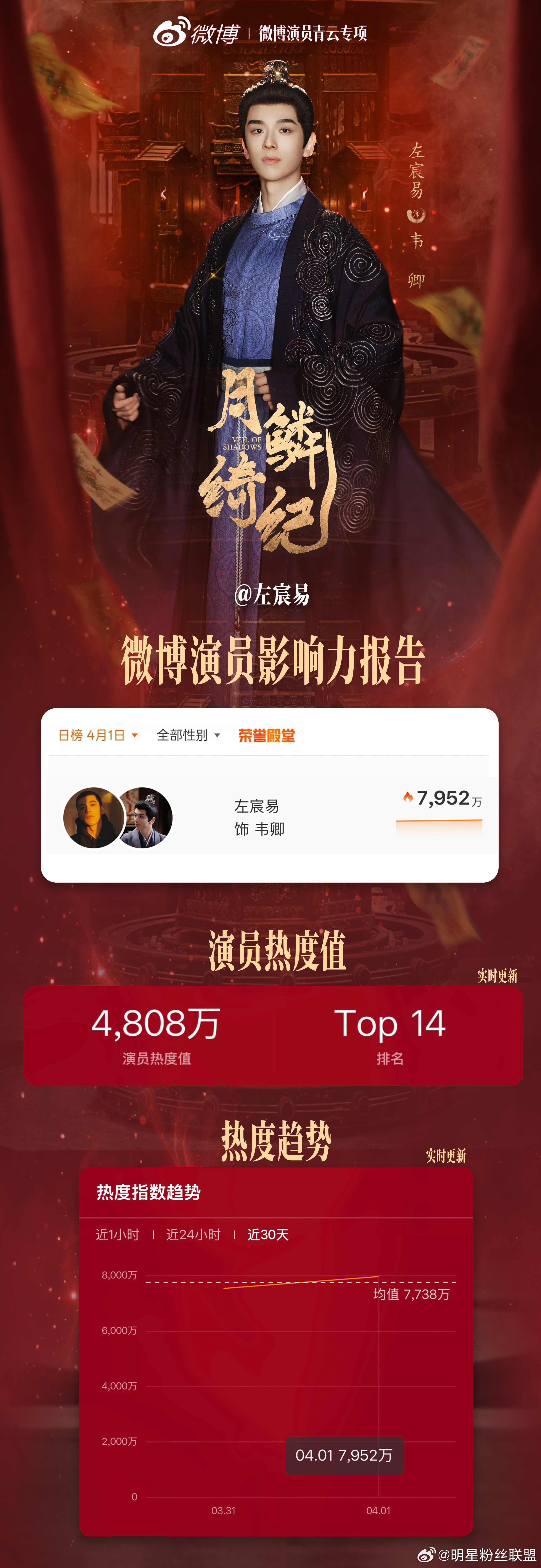 微博青云演员专项 参演作品《月鳞绮纪》,开播首日微博演员影响力指数突破7000