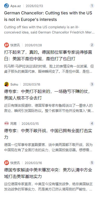 德国军事专家表示:现在不是美国不敢对中国动手,而是现在的美国也不清楚,自己会不会在中美战争中取得自己想要的结果。 麻烦看官老爷们右上角点击一下“关注”,既方便您进行讨论和分享,又能给您带来不一样的参与感,感谢您的支持! 德国专家布鲁姆在分析中说得非常直白。他指出,中国在过去几十年里悄悄完成了一套堪称“铜墙铁壁”的国防体系建设,尤其是那套被军事界称为反介入/区域拒止的防御网络,已经在西太平洋地区布下了一张严密的防护网。这套体系不是某一种武器那么简单,而是涵盖了陆基导弹、先进战机、海上力量以及太空侦察、电子干扰等多维能力的综合防御生态。具体来说,从近海到第二岛链,中国部署了多款让美军航母编队不得不三思而后行的“撒手锏”。东风21D和东风26被外界称为“航母杀手”,射程覆盖关岛,末端速度超过10马赫,能在大气层内玩“打水漂”式的变轨,现有反导系统基本拦不住。东风17更是高明,搭载的高超音速滑翔飞行器可以在飞行途中随意改变轨迹,美军的雷达根本算不出它下一秒往哪飞。这意味着,美军那些曾经不可一世的航母战斗群,如今在靠近中国海岸线两千公里以内时,就得时刻提防头顶上落下来的“天降正义”。 美国学者大卫·P·戈德曼在分析中打了个很形象的比方。他把中国的A2/AD战略比作一套防守型拳击,核心思想是让对方无法靠近并施展自己的优势。他举了1976年拳王阿里与日本空手道选手猪木的表演赛为例,猪木大部分时间趴在地上用脚踢阿里的小腿,阿里虽有几次反击机会,最终却因腿部受伤严重,比赛以平局收场。戈德曼认为,中国的防御策略就是这个道理——不直接与美国展开全面对抗,而是利用一套复杂的系统,把对手的力量限制在一定距离之外。这套体系之下,美军在第一岛链的前沿基地,从日本横须贺到冲绳嘉手纳,从关岛安德森到菲律宾的军事设施,全都暴露在解放军的精确打击范围内。一旦冲突爆发,这些基地的机场跑道、指挥中心、燃料库可能在几小时内就被瘫痪,美军的全球后勤链瞬间断裂。 经济账更是让华盛顿不得不反复掂量。德国专家布鲁姆在分析中把战争还原为一笔最理性的经济账。中美之间的经贸捆绑早就不是简单的买卖关系,而是你中有我、我中有你的深度嵌套。根据中国海关总署2026年1月发布的数据,2025年我国对美国进出口总额达到4.01万亿元人民币,占我国进出口总值的8.8%。按照美方统计,2025年前10个月美国对中国进出口3736.4亿美元,占美国进出口总值的7.8%。中国是美国第三大出口目的地国和第三大进口来源国,美国是中国第一大货物出口目的地国和第三大进口来源国。这种经济联系背后,是全球供应链的深度交织。德国专家指出,一旦战争打响,全球供应链会在短时间内断裂,美国国内将面临物价飞涨、物资短缺的社会动荡。但最致命的还不是这些,而是美元全球霸主地位的动摇。美元信用建立在一个基本前提上——稳定预期。如果美国主动挑起与全球第二大经济体的战火,各国必然恐慌性抛售美债,导致利率飙升、通胀失控,最终引爆美国本就沉重的债务危机。美国国债早已超过34万亿美元,这种体量的债务,任何一点风吹草动都可能引发连锁反应。 盟友体系方面的制约同样不可忽视。德国专家观察发现,美国在亚太的盟友各怀心思。日本、韩国、菲律宾这些国家,嘴上跟着美国喊口号,心里却惦记着中国市场的订单。德、日、韩等核心盟友与中国的经贸联系远超美国,要让他们为了美国的霸权私利与中国彻底决裂,无异于让他们自己割断经济命脉。欧洲国家更不愿意为了美国的战略目标牺牲自身利益。德国专家布鲁姆甚至直言,这些盟友还没傻到那个份上。更深层的问题是,美国国内根本没有形成开战的共识。普通美国人愿不愿意为了台海、南海那些他们甚至搞不清楚具体地理位置的地方,把自己的儿子送上战场?答案显而易见。现在美国国内政治极化严重,社会撕裂,从国会到媒体,从企业到民众,没人真正相信这一仗能赢,也没人愿意为一场打不赢的战争付出生命代价。