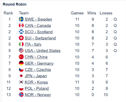 6支出线球队已经全部提前产生,分别是瑞士、瑞典、加拿大、苏格兰、意大利和美国。
